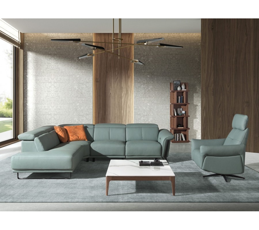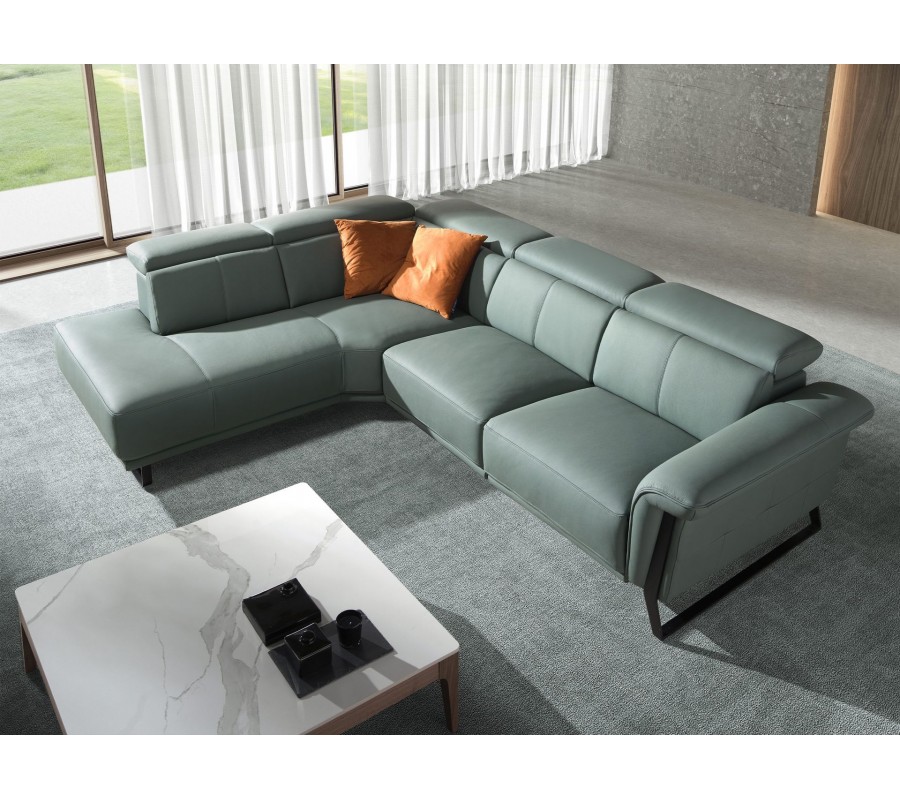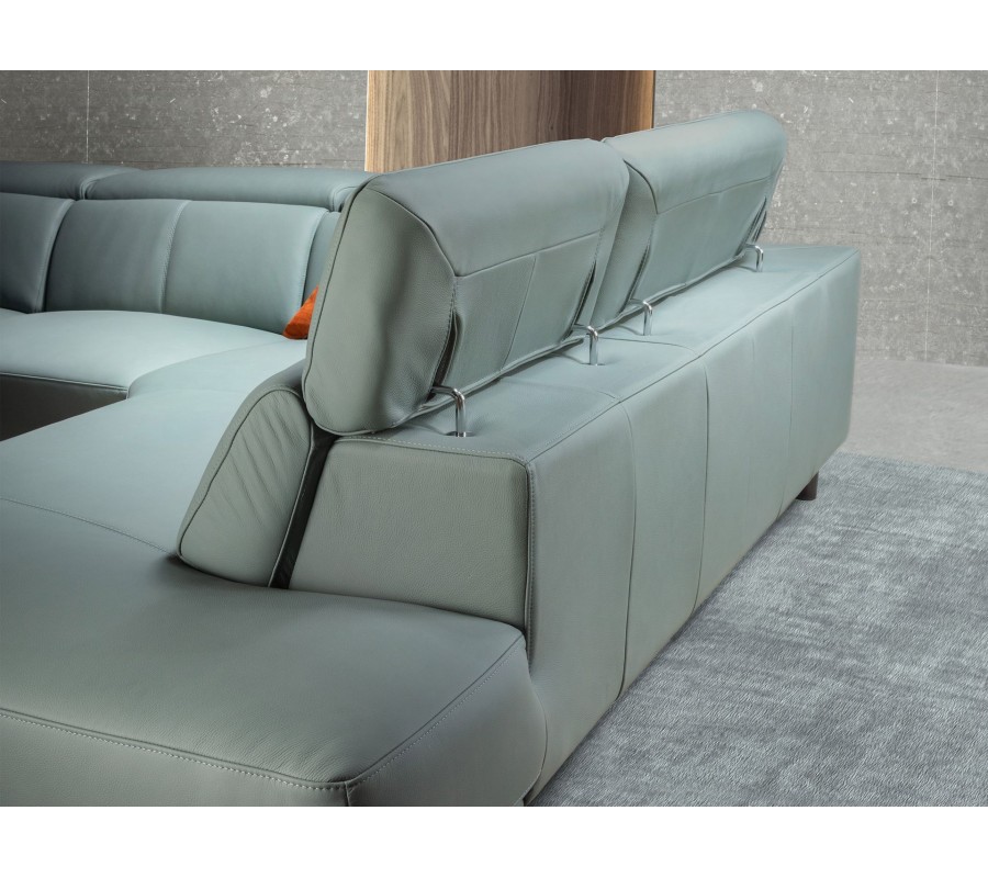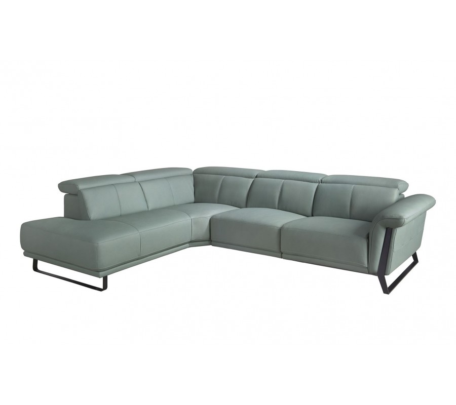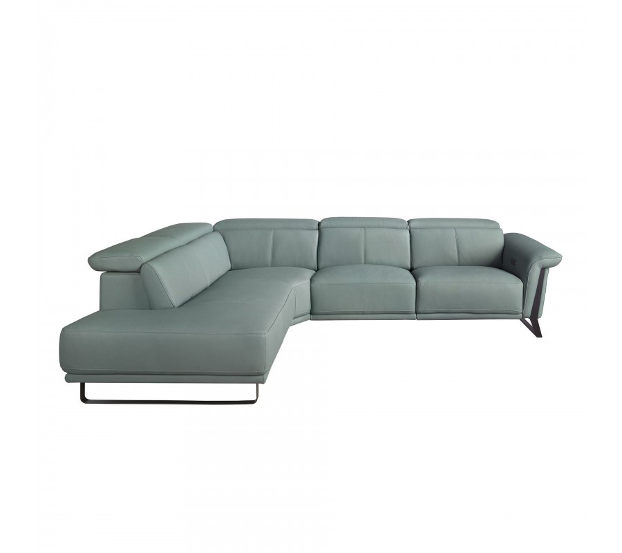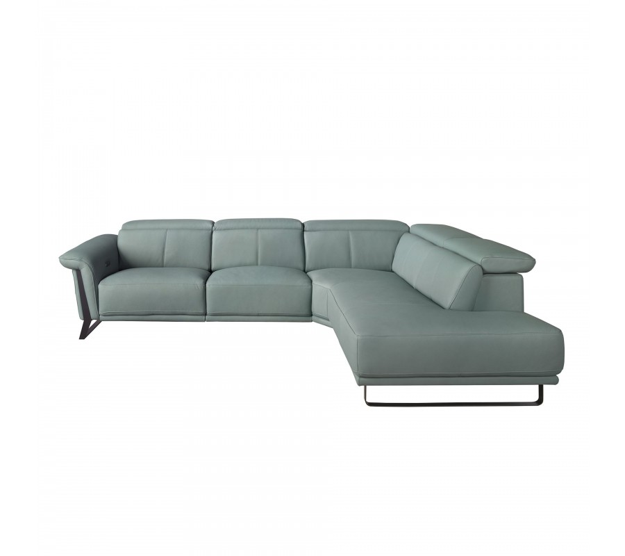 Luxusní kožená rohová polohovatelná sedačka Vita Naturale ve světle zelně modré barvě pravý nebo levý roh 306 cm