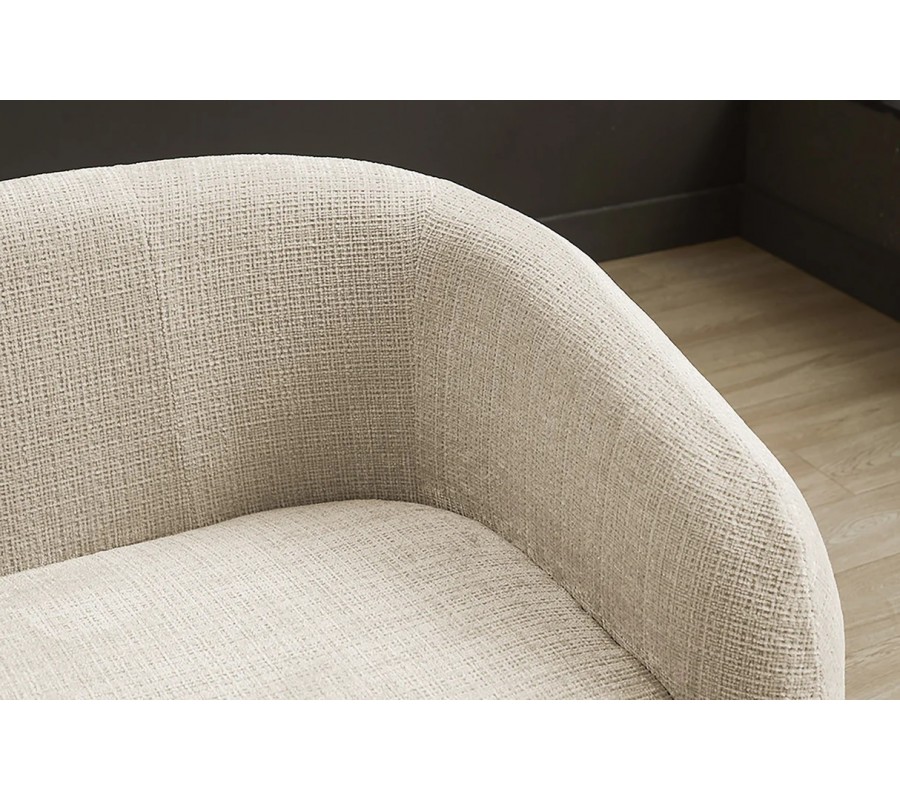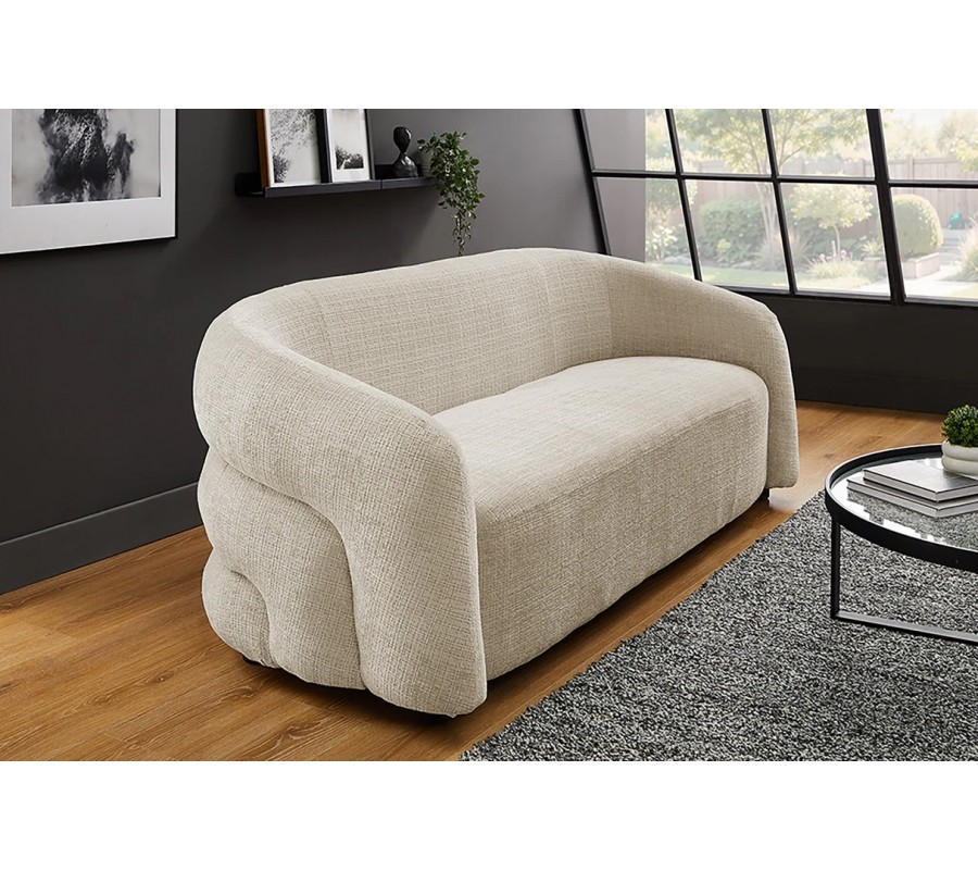 Nenápadné černé nohy dodávají sedačce vizuální lehkost a jemný kontrast ke světlému čalounění, přičemž podporují moderní a minimalistický charakter celého modelu. Vnitřní sedací prostor o šířce 159 cm poskytuje komfortní místo k sezení pro dvě až tři dospělé osoby.