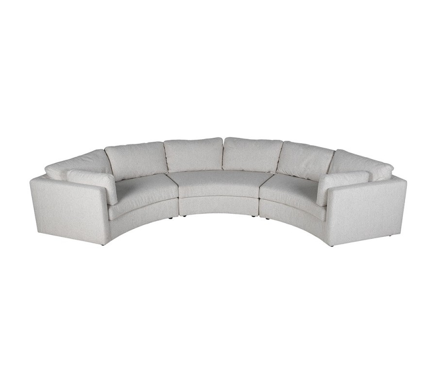 Luxusní moderní půlkruhová šestimístná sedačka Jules s bílým strukturovaným potahem 375 cm