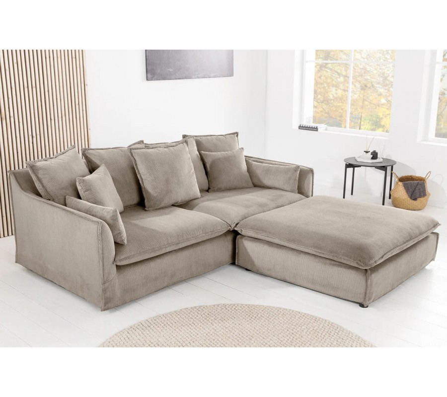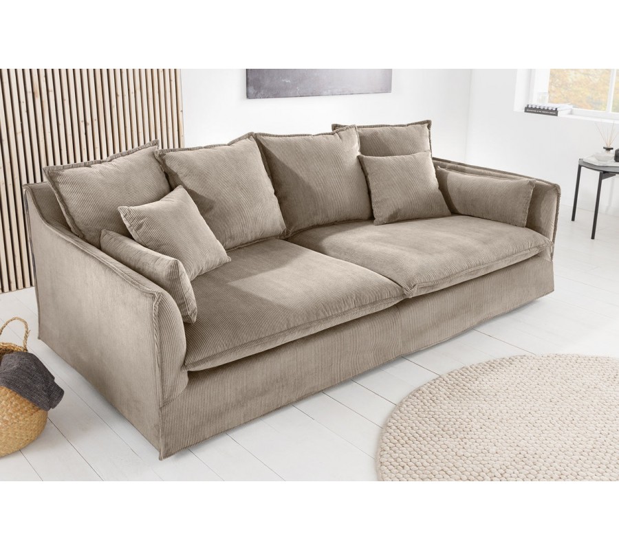 Moderní skandinávská třímístná sedačka Heaven s béžovým manšestrovým odnímatelným potahem a polštáři 200 cm