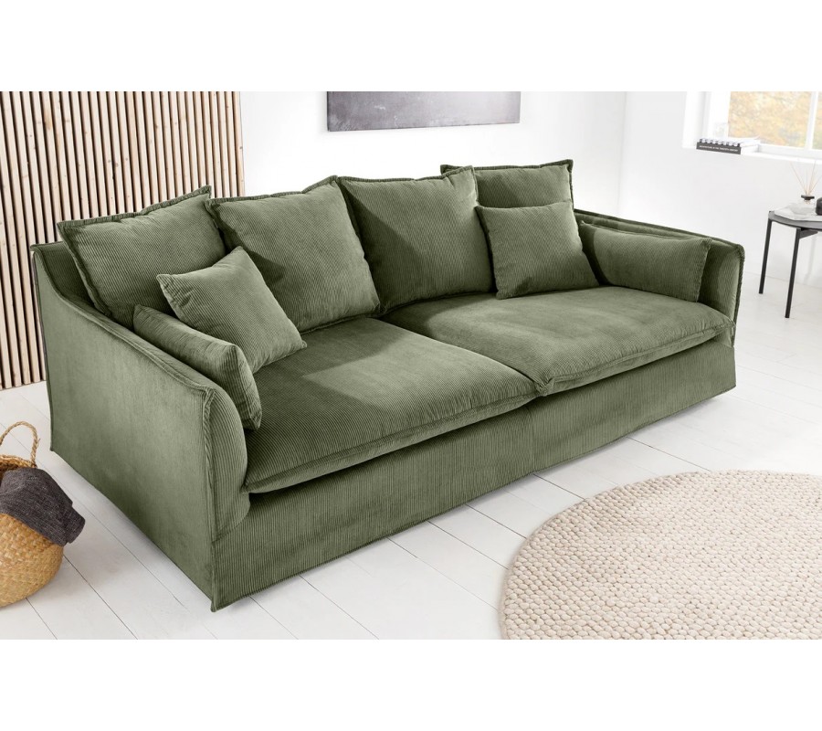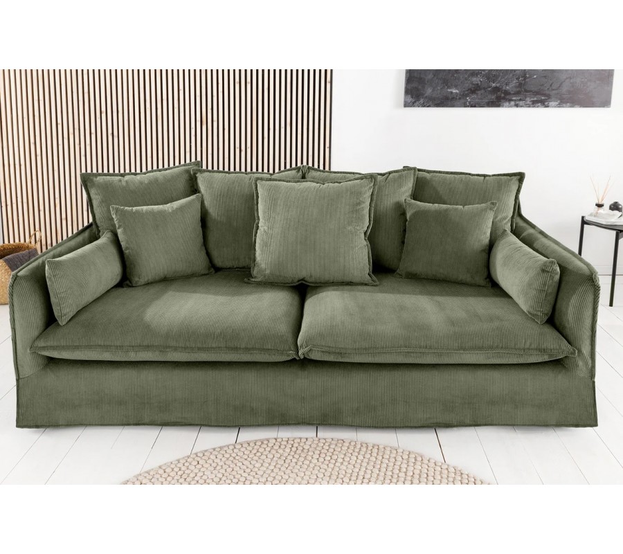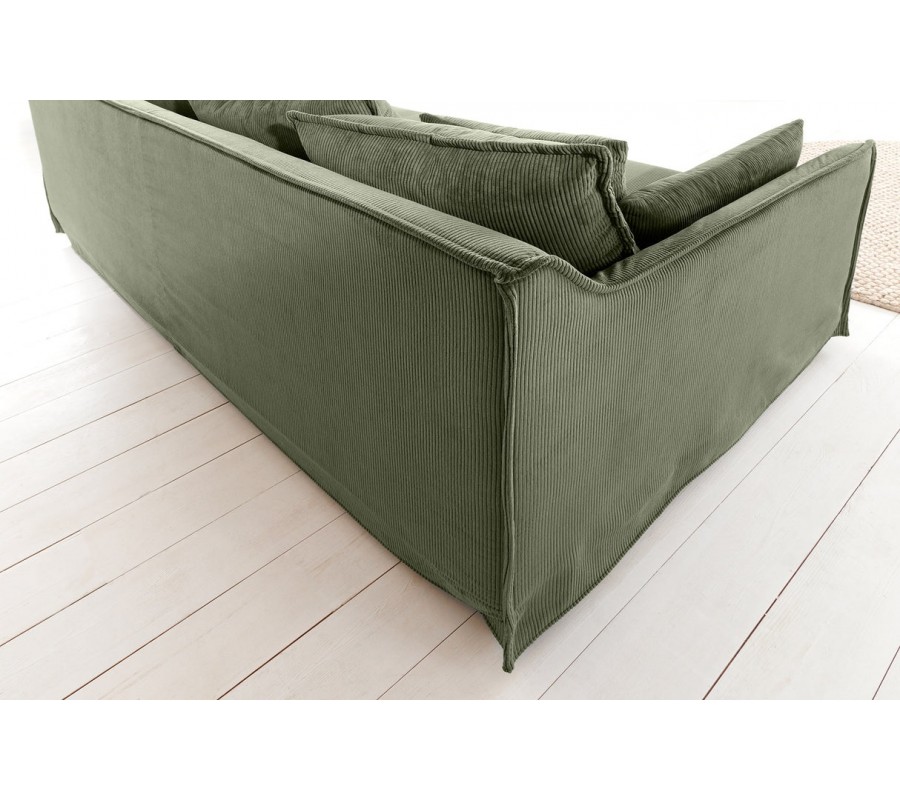 Designová skandinávská třímístná sedačka Heaven se šalvějově zeleným odnímatelným manšestrovým potahem a polštáři 200 cm