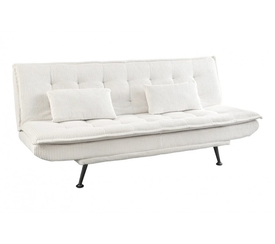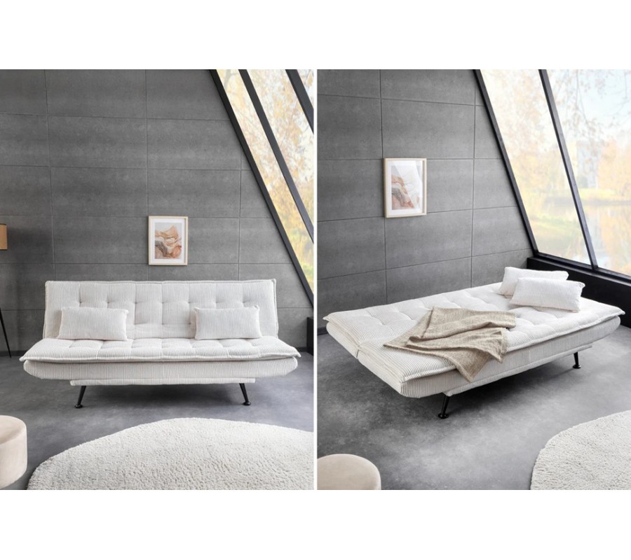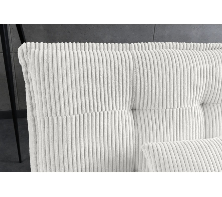 Sedačka je čalouněna manšestrovým potahem v béžové barvě, který působí jemně, útulně a je příjemný na dotek. Opěradlo je prošíváno do pravidelného čtvercového vzoru, který dodává designní strukturu a vizuální hloubku. Prošívaný lem po obvodu sedadla i opěradla zvýrazňuje precizní zpracování a moderní charakter sedačky. Součástí jsou dva obdélníkové polštáře, které zvyšují pohodlí a dotvářejí celkový vzhled.