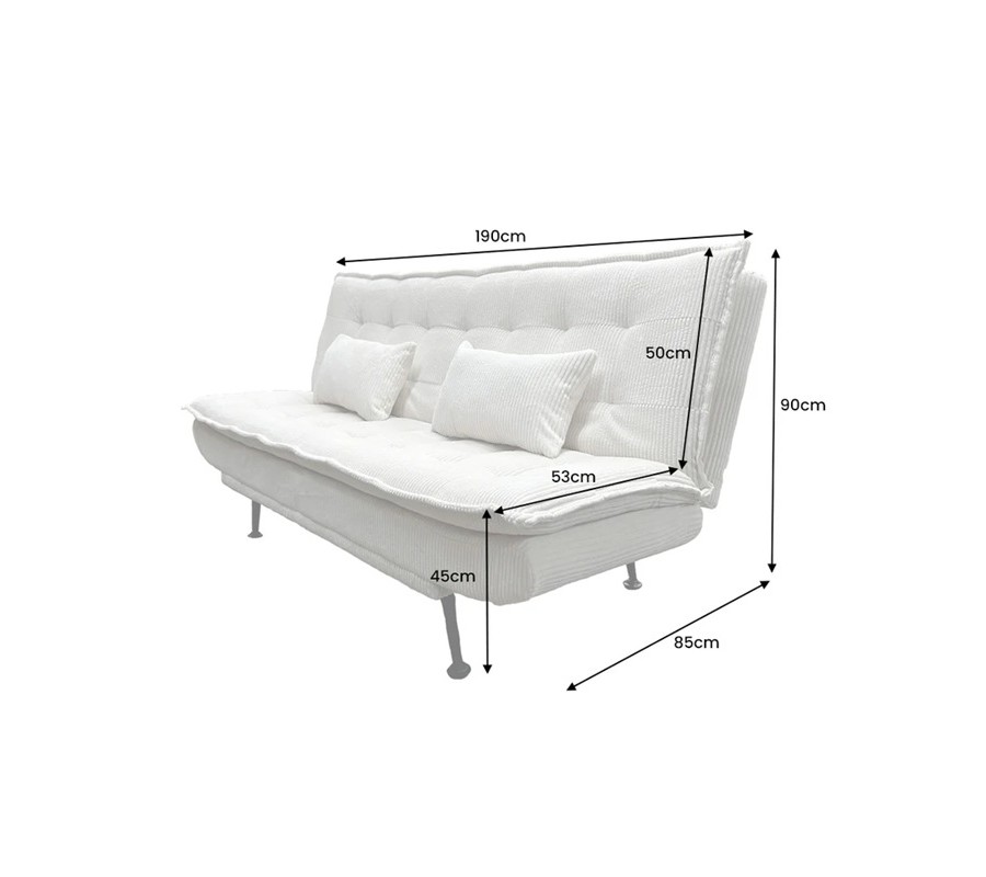 Moderní rozkládací třímístná obdélníková sedačka Manchester v béžové barvě s manšestrovým potahem a polštáři 195 cm