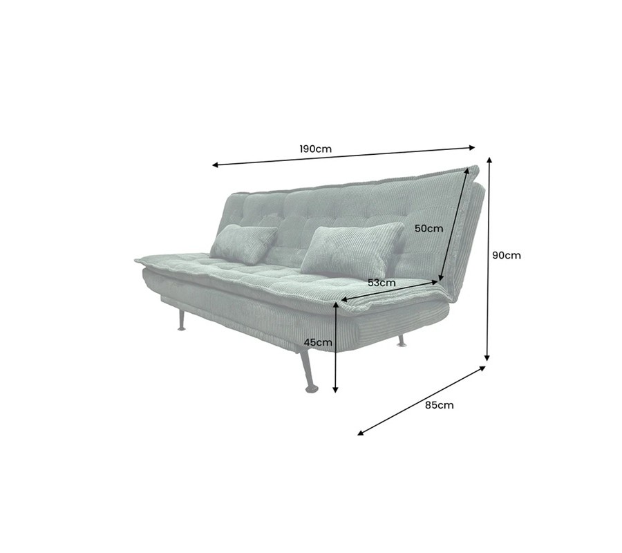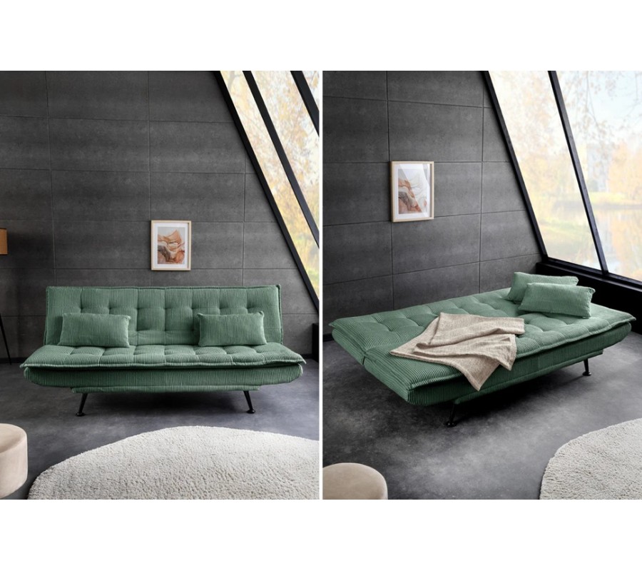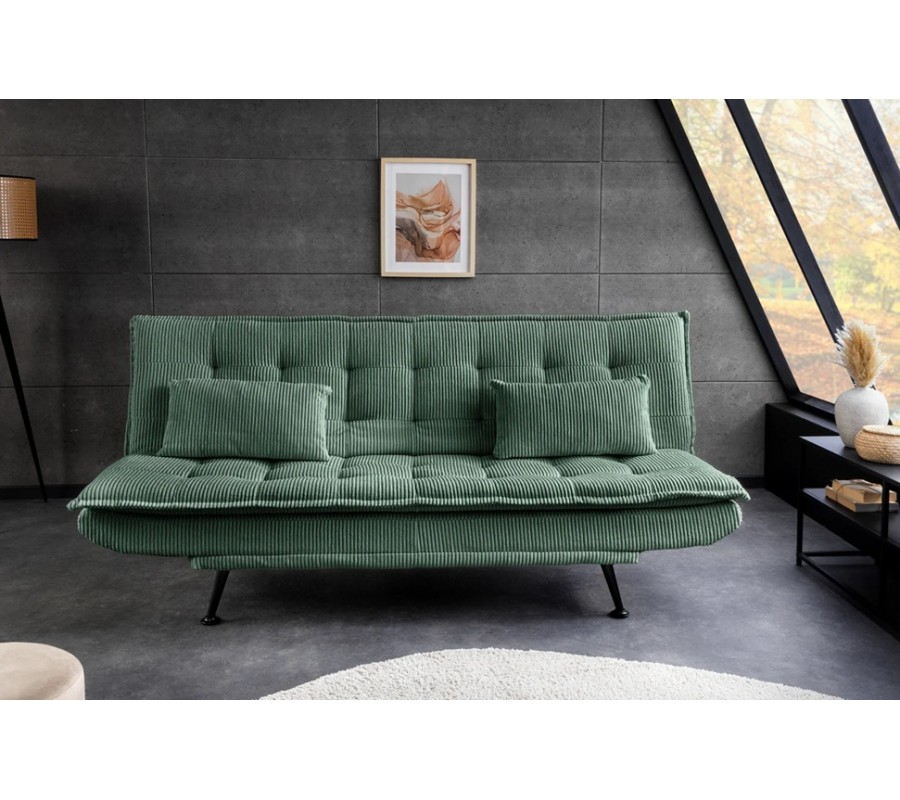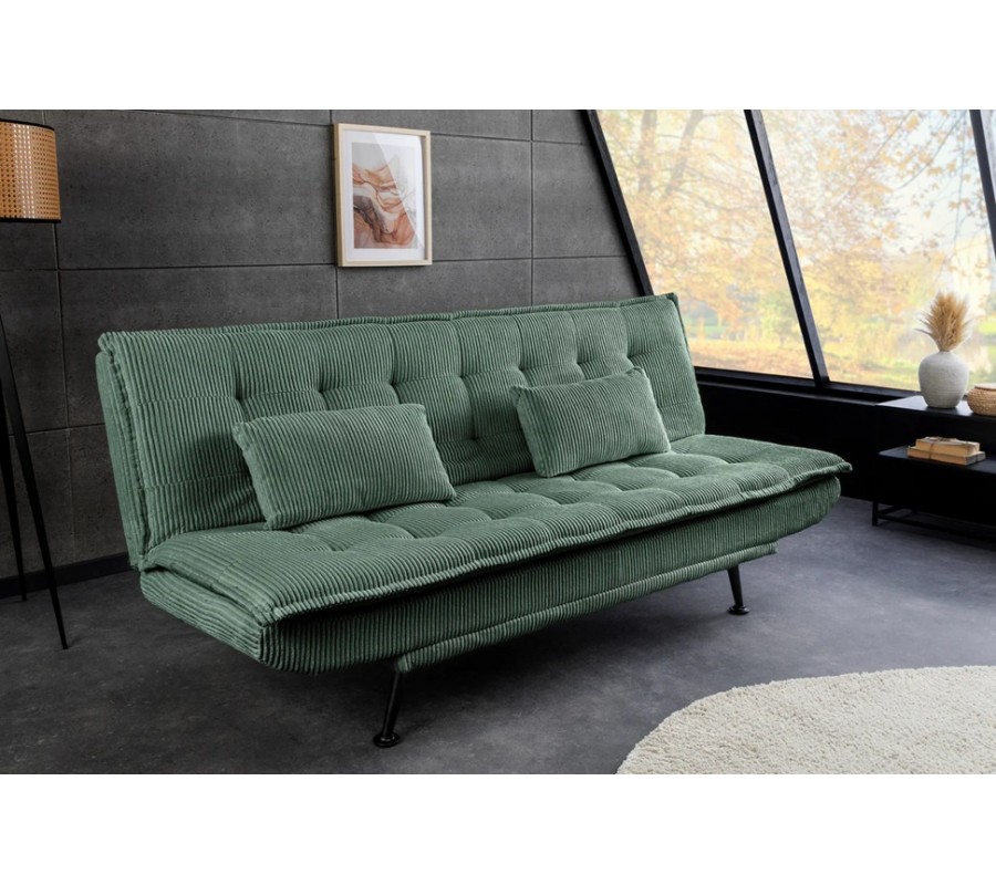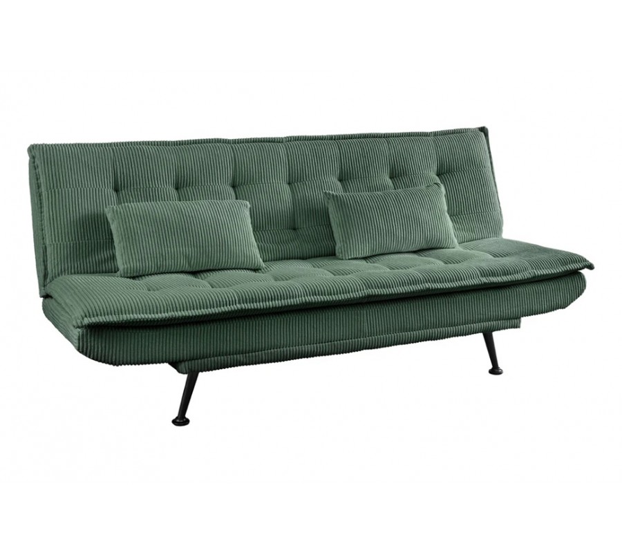 Moderní rozkládací třímístná sedačka Manchester v zelené barvě s manšestrovým potahem se dvěma polštáři 190 cm