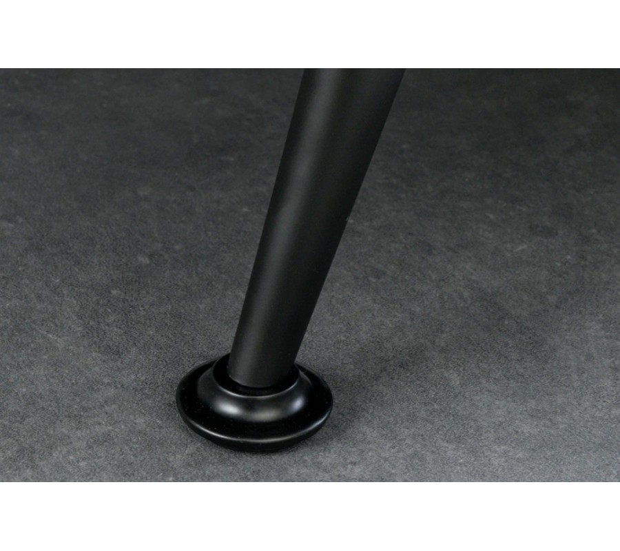 Základ sedačky tvoří pevná dřevěná konstrukce doplněná o černé kovové nožičky, které jsou mírně vyosené. Tento detail dodává sedačce stabilitu, lehkost a jemný industriální akcent, přičemž celek působí vyváženě a elegantně.