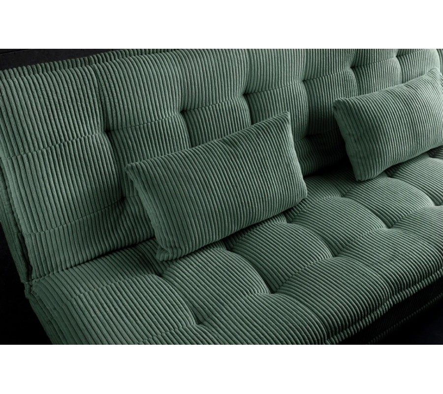 Moderní rozkládací třímístná sedačka Manchester v zelené barvě s manšestrovým potahem se dvěma polštáři 190 cm