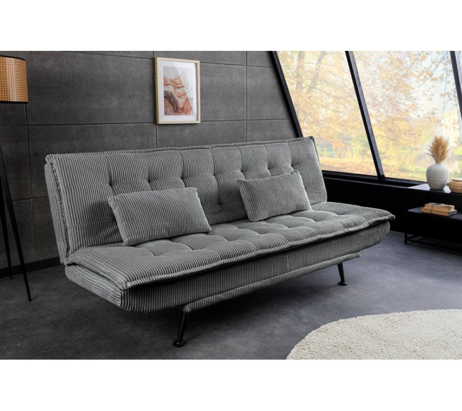 Moderní obdélníková rozkládací čalouněná třímístná sedačka Manchester v tmavě šedé barvě s manšestrovým potahem 190 cm
