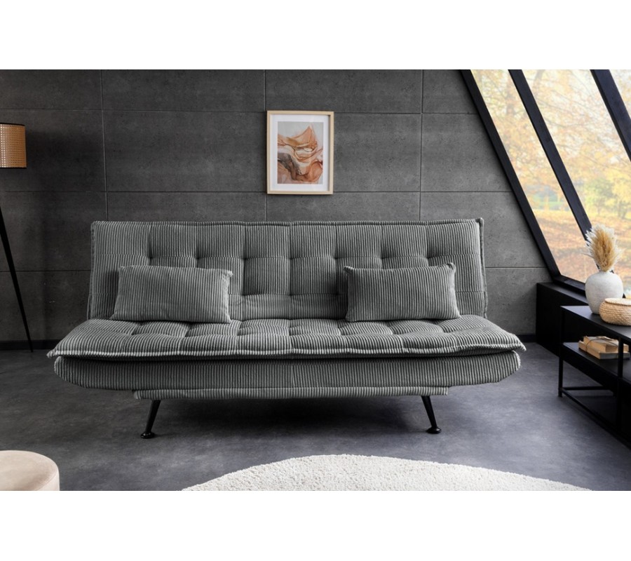 Moderní obdélníková rozkládací čalouněná třímístná sedačka Manchester v tmavě šedé barvě s manšestrovým potahem 190 cm