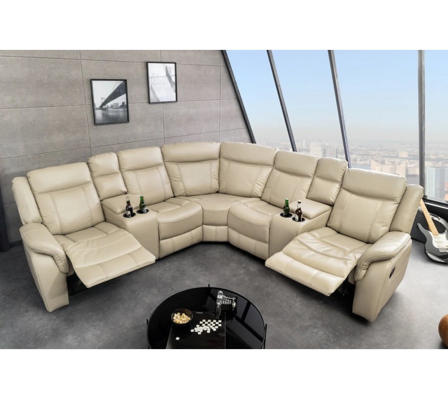Luxusní rohová pětimístná kinosedačka Phoenix v béžovém eko-koženém provedení je navržena pro maximální komfort a dokonalý relax v domácím prostředí. Sedačka se skládá ze čtyř křesel a jednoho rohového sedadla, čímž vytváří prostornou rohovou sestavu ideální do větších obýváků nebo místností určených pro domácí kino. Boční křesla jsou vybavena polohovatelnými opěrkami na nohy pák, díky čemuž si můžete nastavit pohodlnou polohu pro odpočinek, sledování filmů nebo večerní relax.