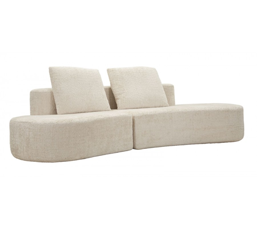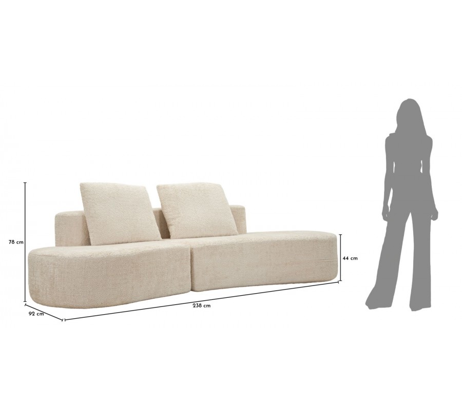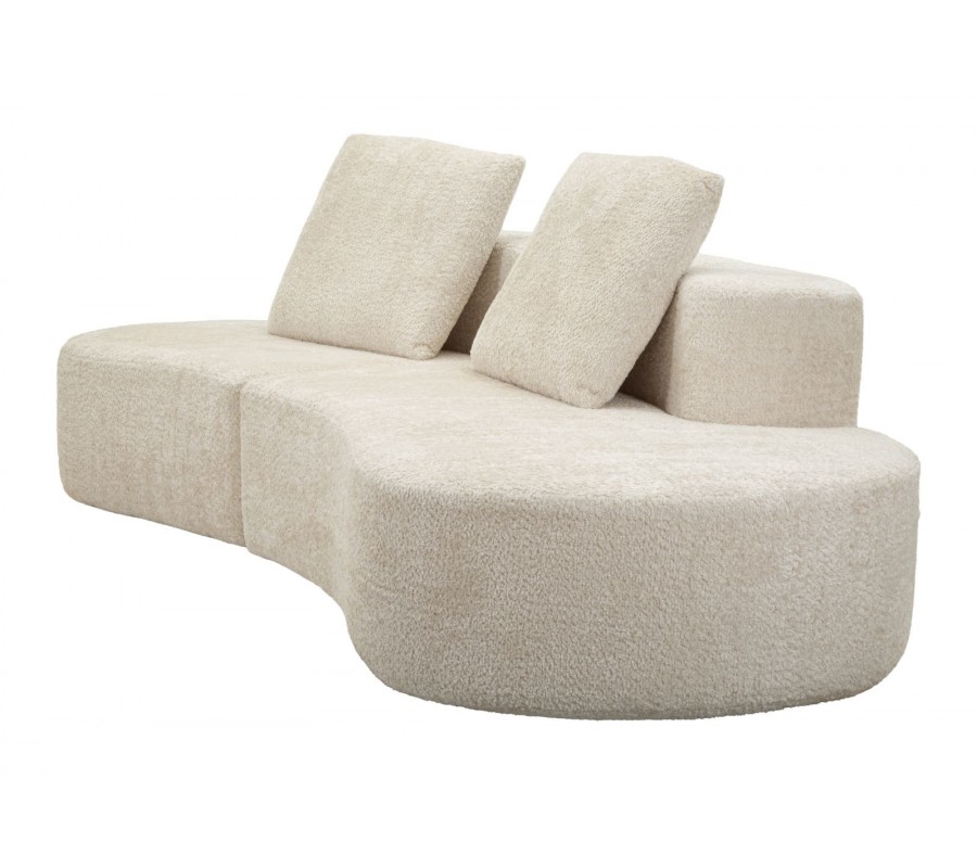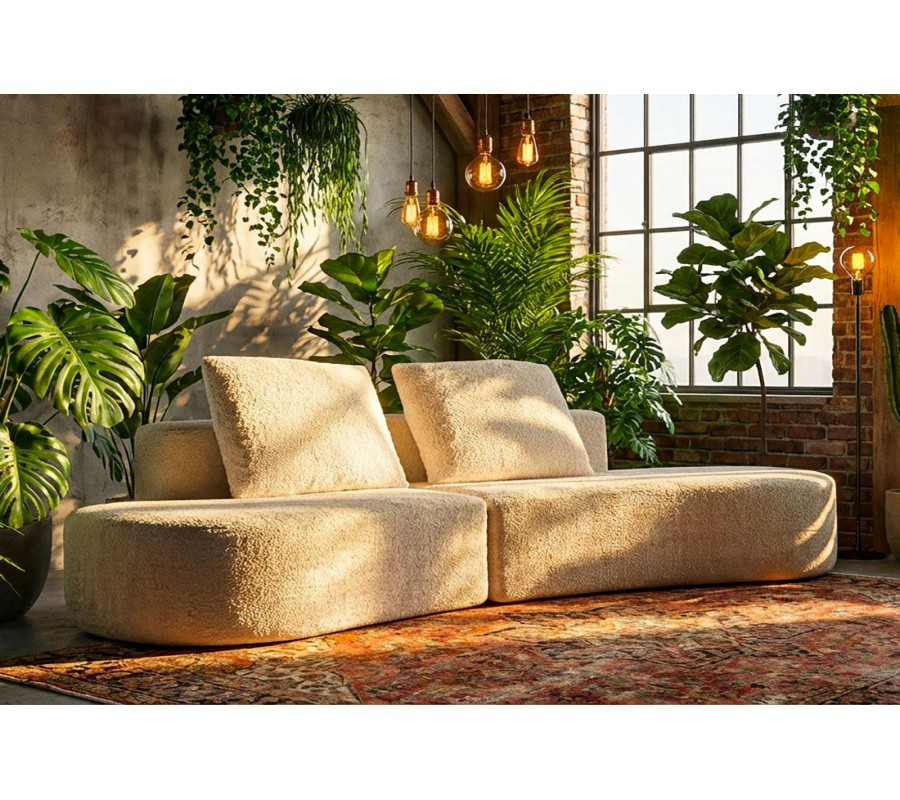 Čtyřmístná sedačka Lilos je výrazným designovým kouskem, který spojuje moderní přístup k bydlení s jemnou estetikou art deco stylu. Její organický, zaoblený tvar působí měkce a sochařský, díky čemuž se stává dominantním prvkem interiéru. Krémové barevné provedení v kombinaci se semišovým potahem dodává sedačce elegantní, klidný a nadčasový charakter.