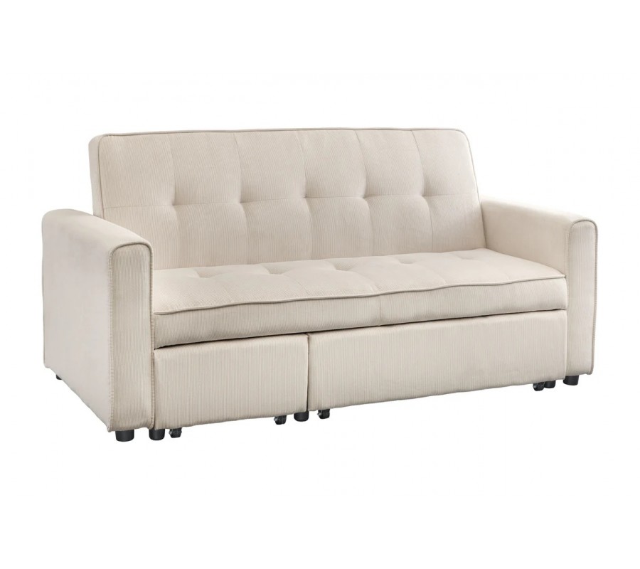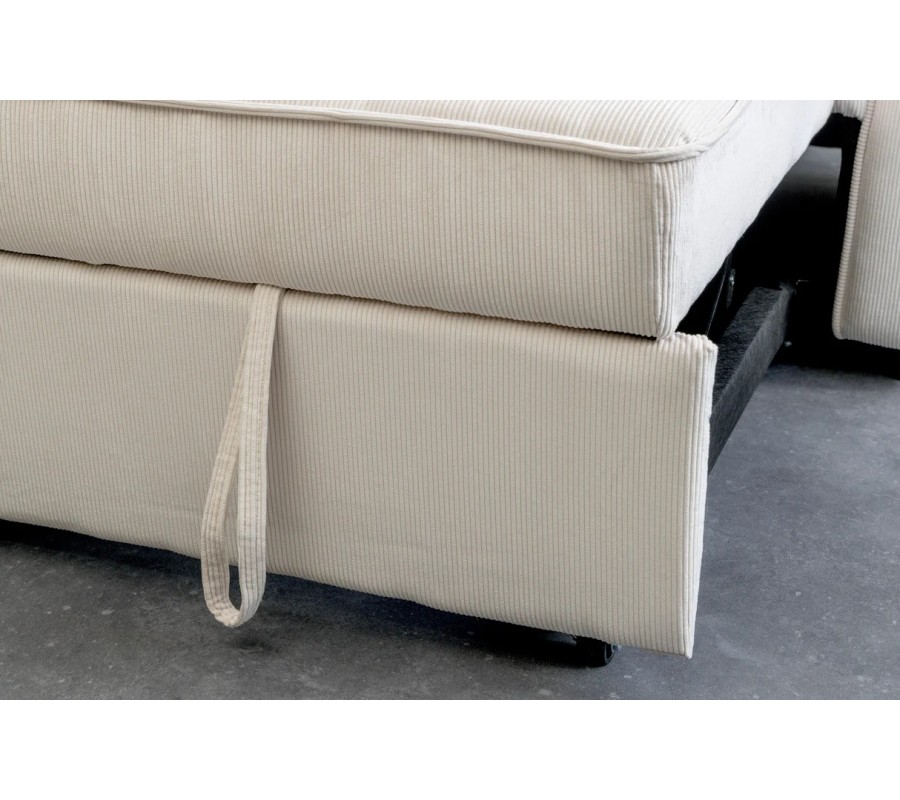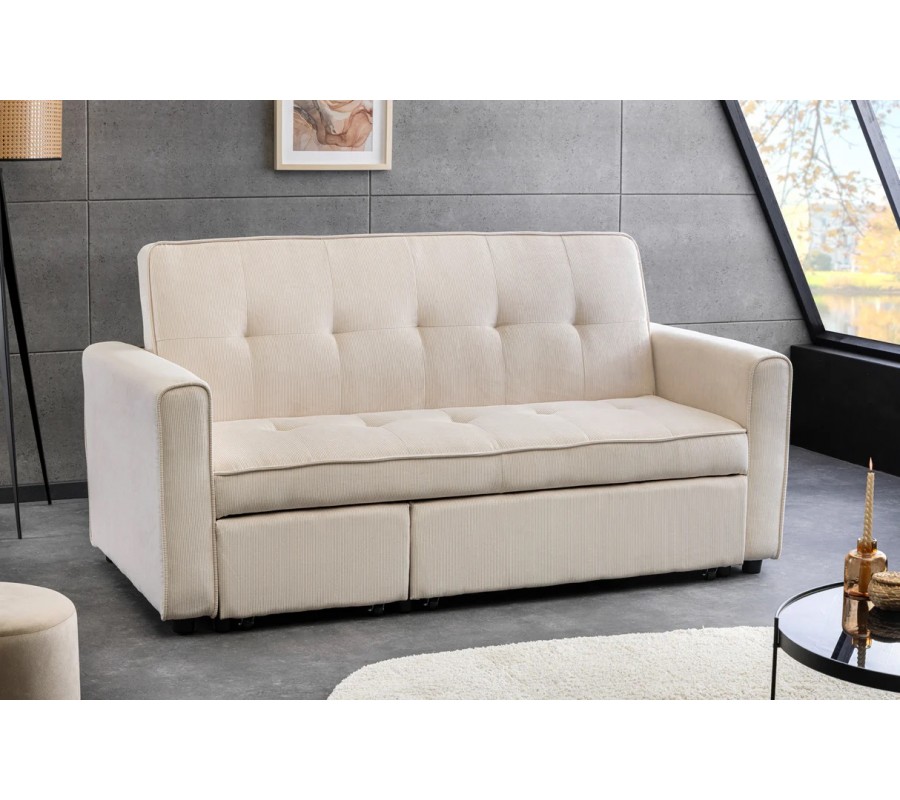 Stylová moderní rozkládací dvoumístná sedačka Lefan s manšestrovým potahem v béžové barvě 180 cm