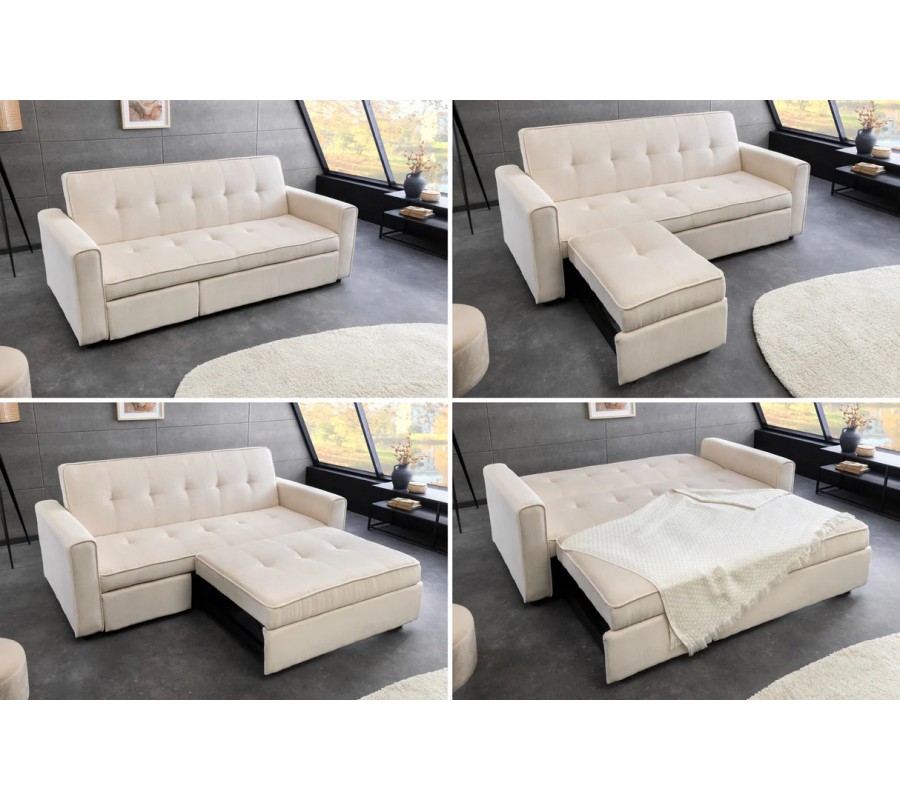 Moderní béžová rozkládací dvoumístná sedačka Lefan je elegantním a mimořádně praktickým řešením pro současné bydlení. Díky promyšlenému rozkládacímu systému nabízí vysokou míru flexibility a snadno se přizpůsobí aktuálním potřebám – od každodenního sezení až po pohodlné ležení či příležitostné přespání.