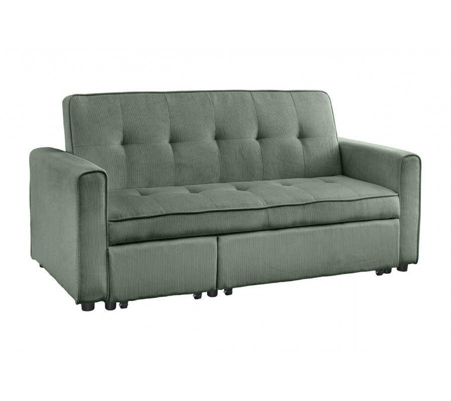 Moderní čalouněná dvoumístná rozkládací sedačka Lefan s manšestrovým tmavozeleným potahem a čtvercovým prošíváním 180 cm