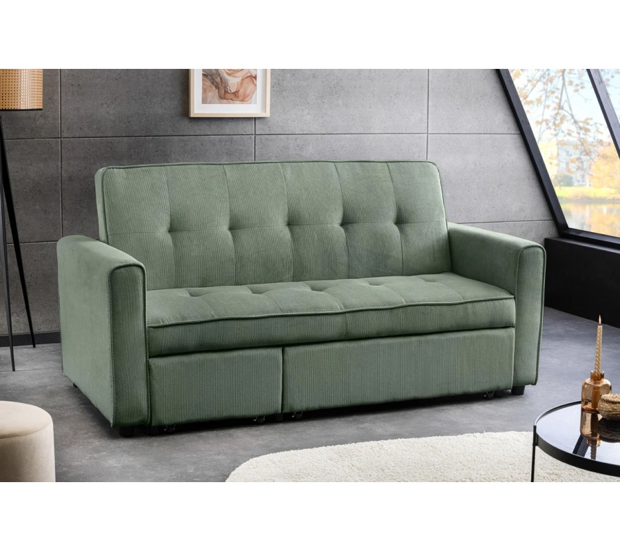 Moderní zelená rozkládací dvoumístná sedačka Lefan je stylovým a funkčním řešením pro současné interiéry, kde je kladen důraz na flexibilitu, komfort a výraznější barevný akcent. Elegantní tvar s bočními opěrkami působí vyváženě a poskytuje příjemnou oporu při každodenním používání.