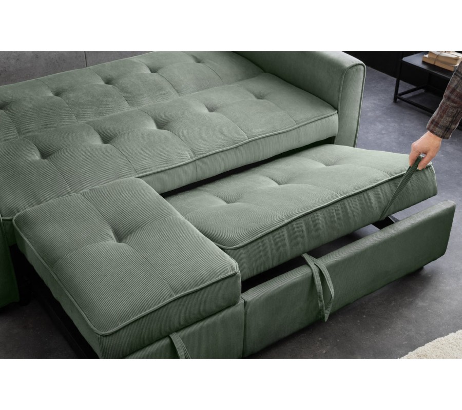 Výraznou předností sedačky Lefan je asymetrický rozkládací mechanismus, který umožňuje několik způsobů využití. Samostatným vysunutím menší levé části vznikne komfortní lehátková poloha, ideální k relaxaci. Vysunutím širší pravé části se zvětší plocha k sezení nebo ležení a vysunutím obou částí najednou vznikne plnohodnotná spací plocha. Sedačka se tak snadno přizpůsobí aktuálním potřebám i prostorovým možnostem.