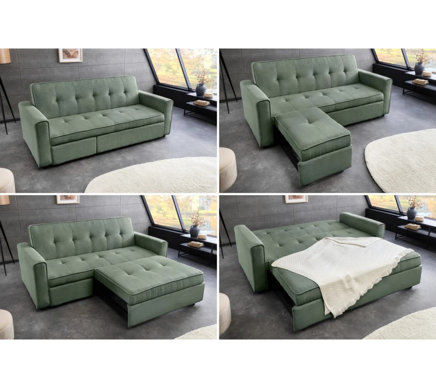 Moderní zelená rozkládací dvoumístná sedačka Lefan je stylovým a funkčním řešením pro současné interiéry, kde je kladen důraz na flexibilitu, komfort a výraznější barevný akcent. Elegantní tvar s bočními opěrkami působí vyváženě a poskytuje příjemnou oporu při každodenním používání.