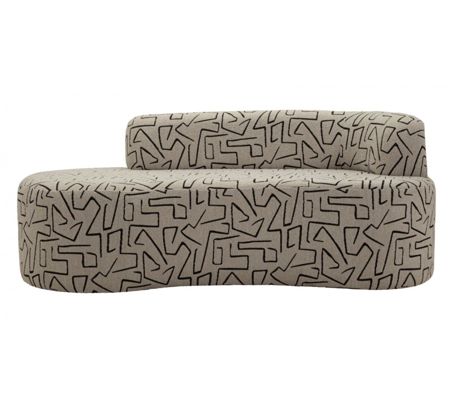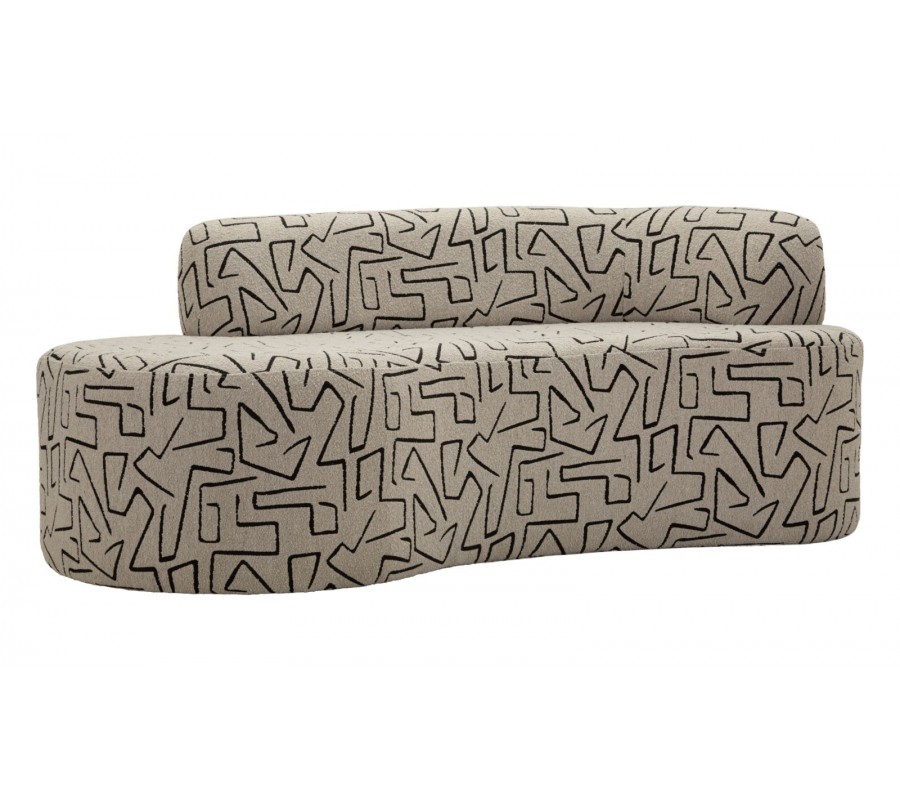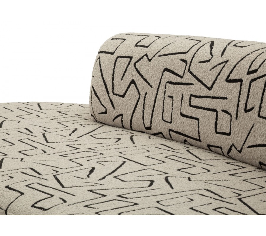 Moderní čalouněná třímístná atypická sedačka Terezja v béžově hnědé barvě s černým geometrickým vzorováním bez opěrek 176 cm