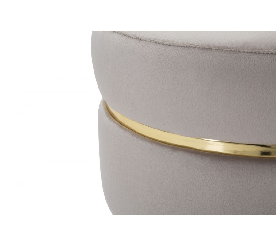 Kulatá taburetka Laurentia v art deco a glamour stylu zaujme svým sametovým potahem ve světle šedé barvě, který jí dodává elegantní a sofistikovaný.