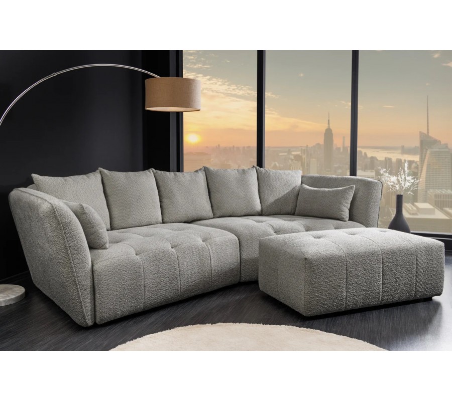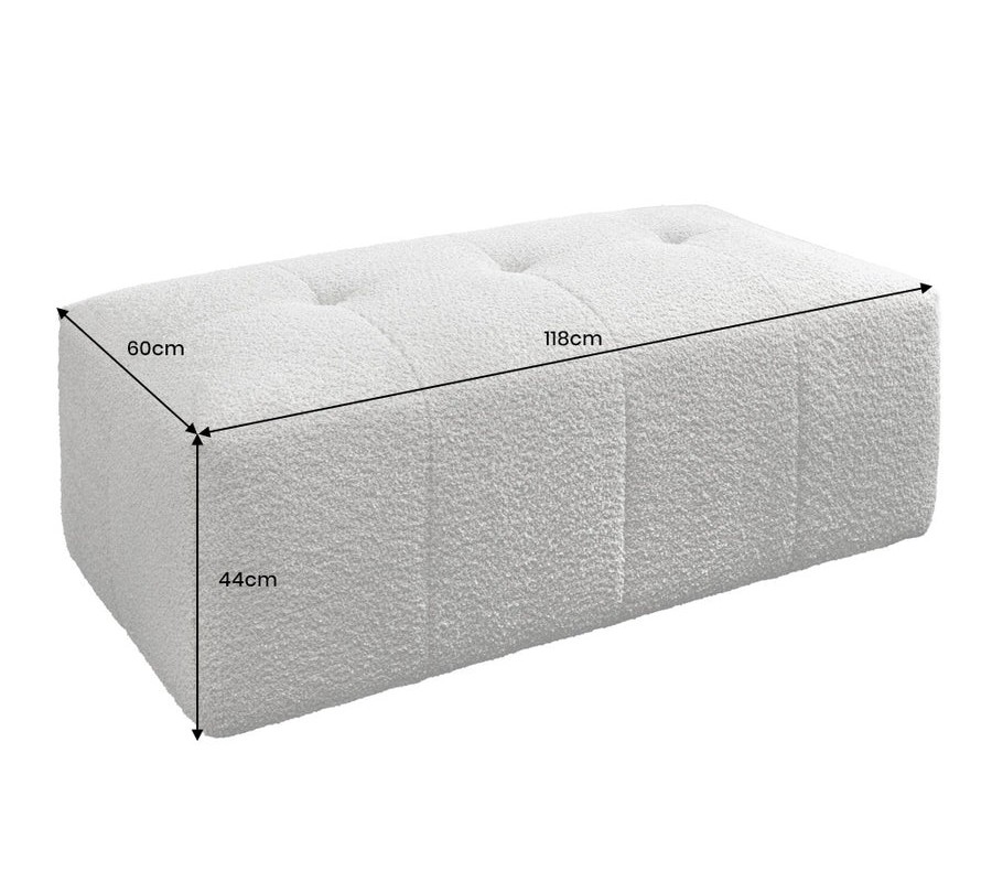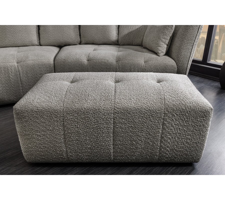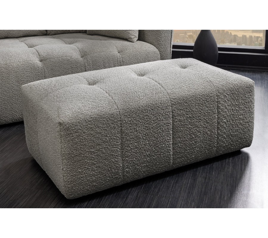 Designová bouclá taburetka Queen v elegantníšedé barvě spojuje moderní minimalismus s útulnou měkkostí textury bouclé, která do interiéru přináší vizuální teplo a jemnou nadýchanost. Obdélníkový dvoumístný tvar působí kompaktně a zároveň komfortně, zatímco prošívání s třemi zapuštěnými knoflíky uprostřed sedací plochy dodává taburetce decentní dekorativní akcent. Šedý bouclý potah se svou typickou smyčkovou strukturou vytváří příjemný haptický povrch a přirozeně zapadne do moderních, skandinávských či minimalistických interiérů. Taburetka je bez nožiček a má pružinové jádro.