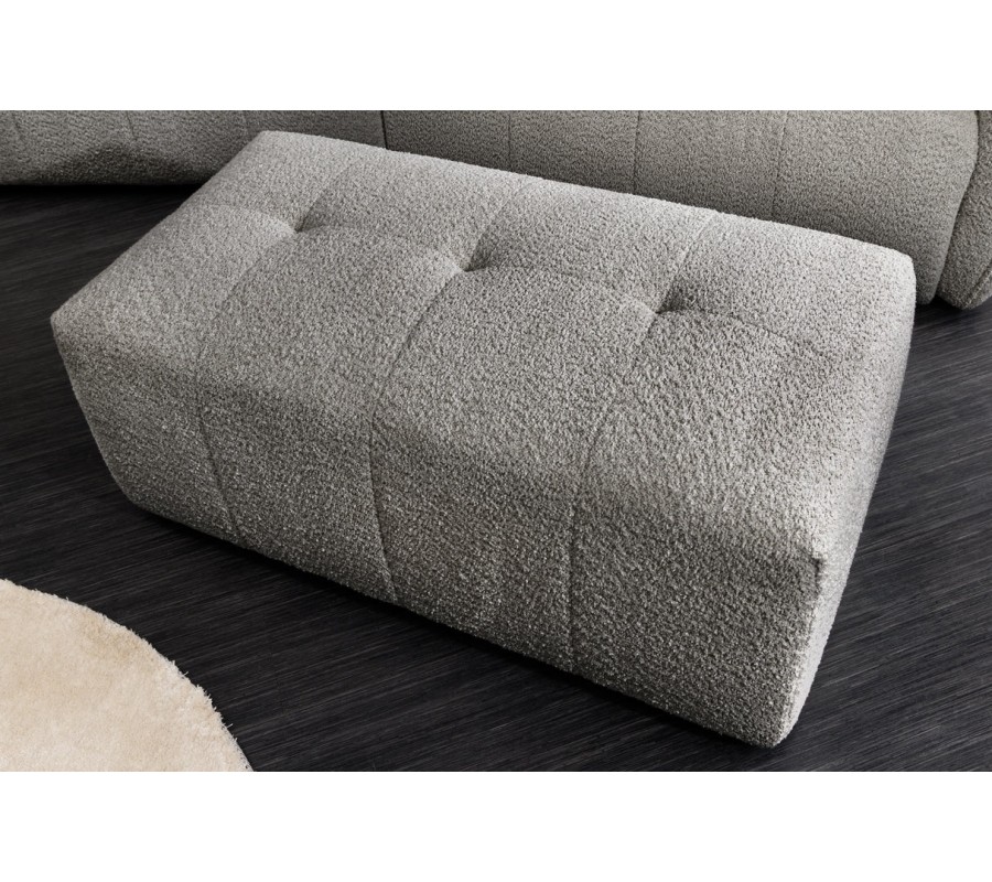 Moderní obdélníková dvoumístná šedá bouclá taburetka Queen s prošíváním a čalouněním 118 cm