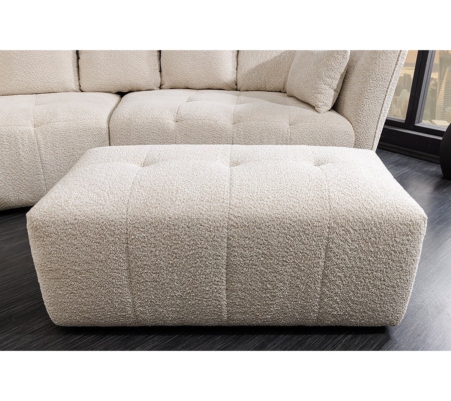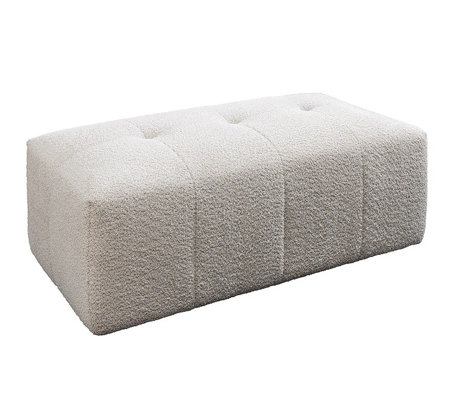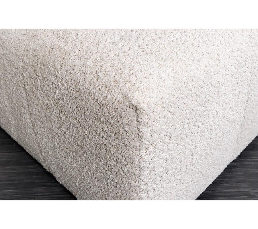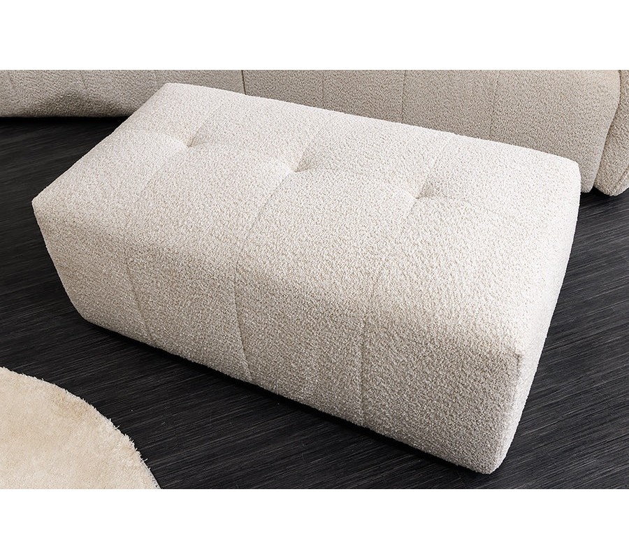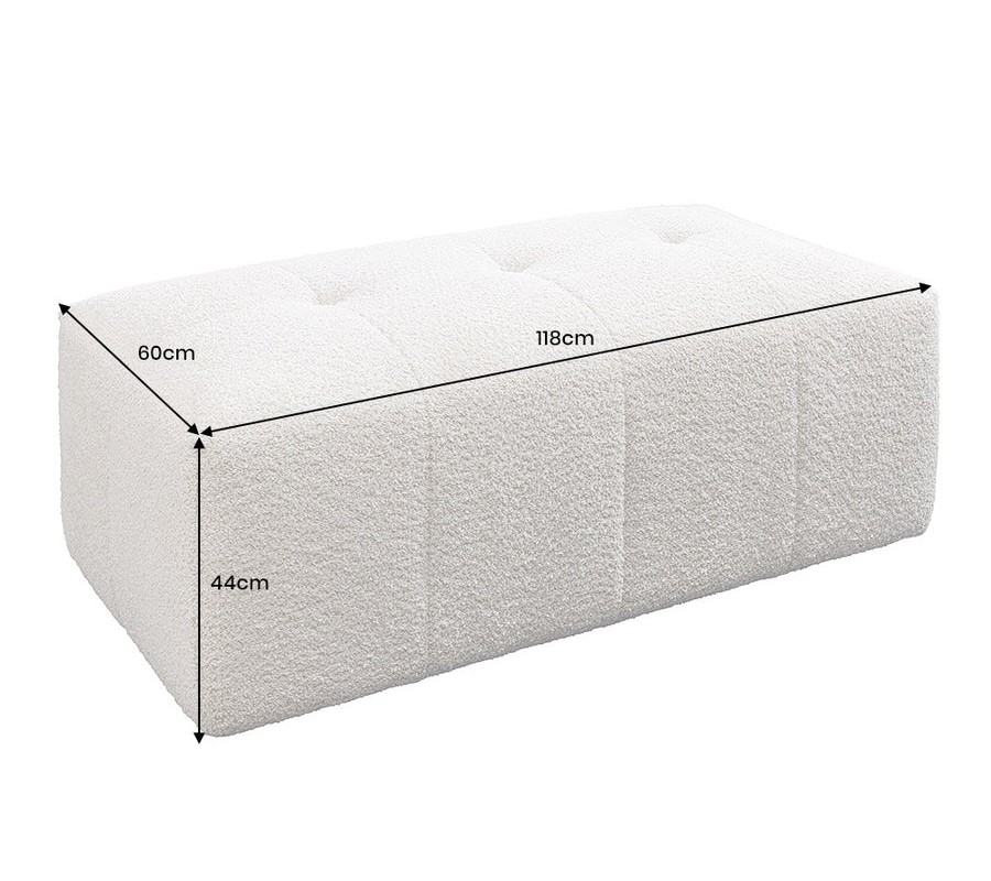 Moderní bouclé dvoumístná obdélníková taburetka Queen v šampaňské béžové barvě s prošíváním 118 cm