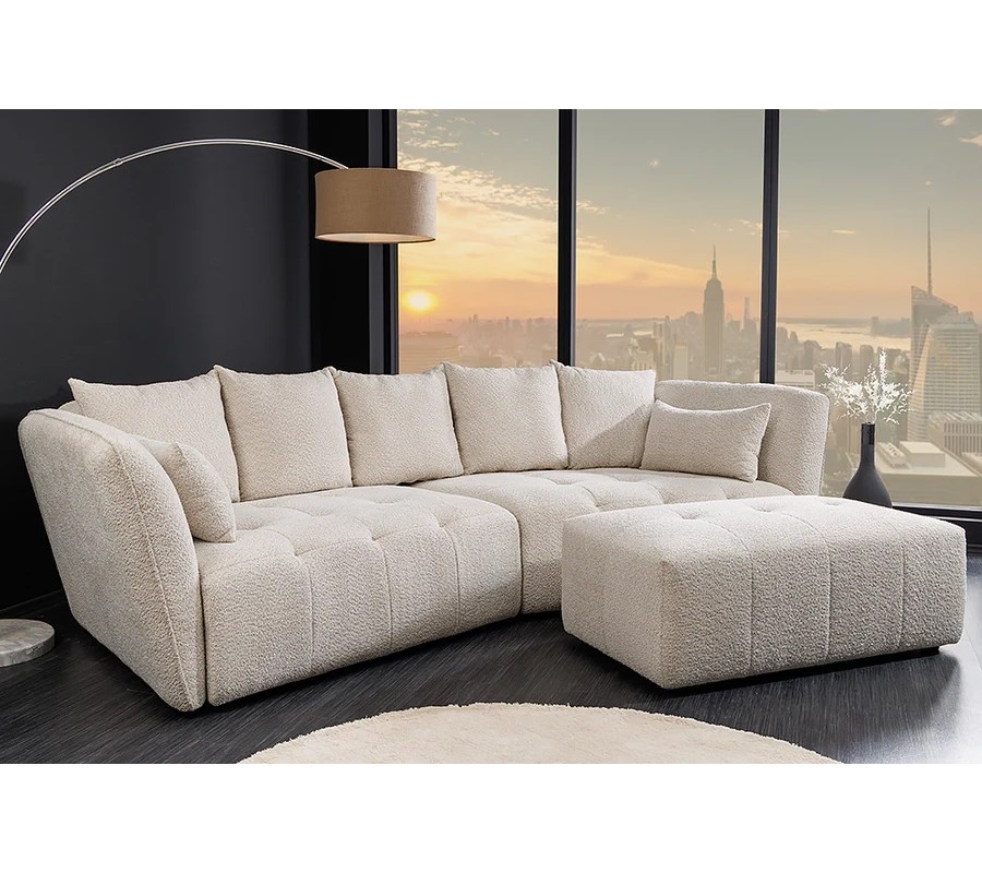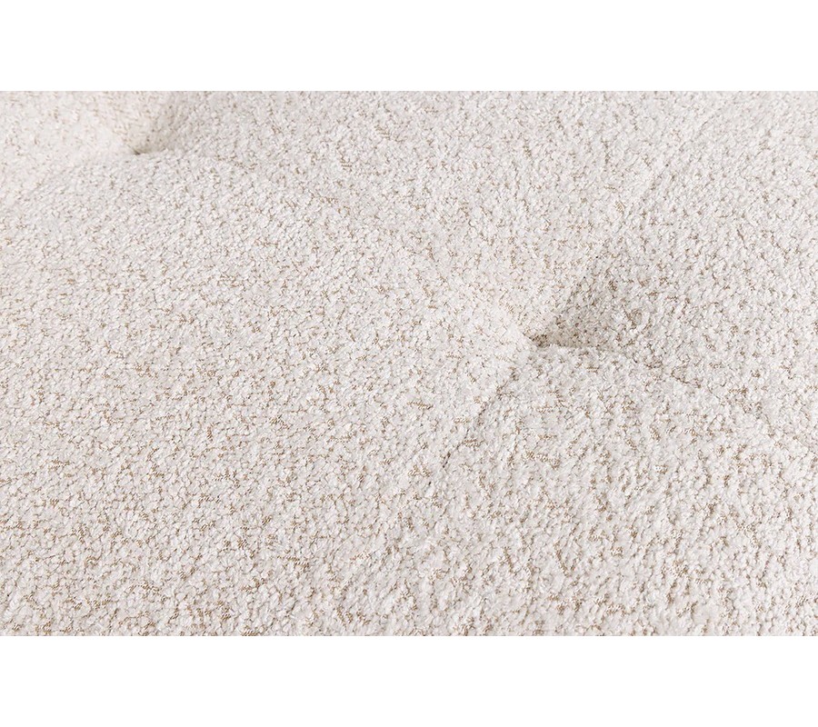 Bouclá taburetka Queen v šampaňské béžové barvě přináší do interiéru jemný vizuál a moderní útulnost, charakteristickou pro bouclé potah s měkkou smyčkovou strukturou. Obdélníkový dvoumístný tvar působí zatím čistě a nadčas knoflíků vytváří elegantní minimalistický efekt. Neutrální šampaňská béžová barva působí měkce, světle a jednoduše se začlení do různých barevných konceptů, přičemž opticky zjemňuje prostor a přináší pocit tepla.