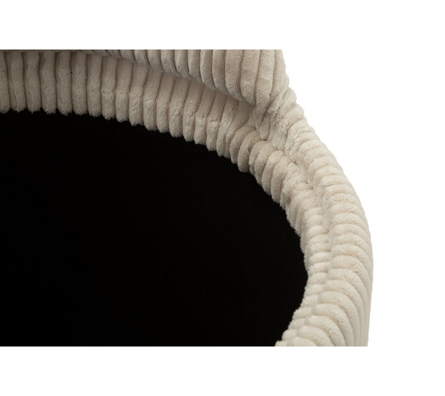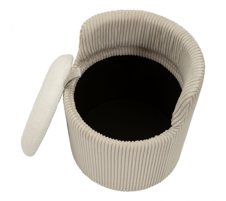 Designová skandinávská kulatá taburetka Shelly s béžovým plyšovým potahem s vertikálním žebrovaným prošíváním 55 cm