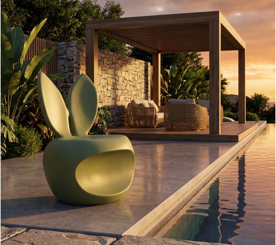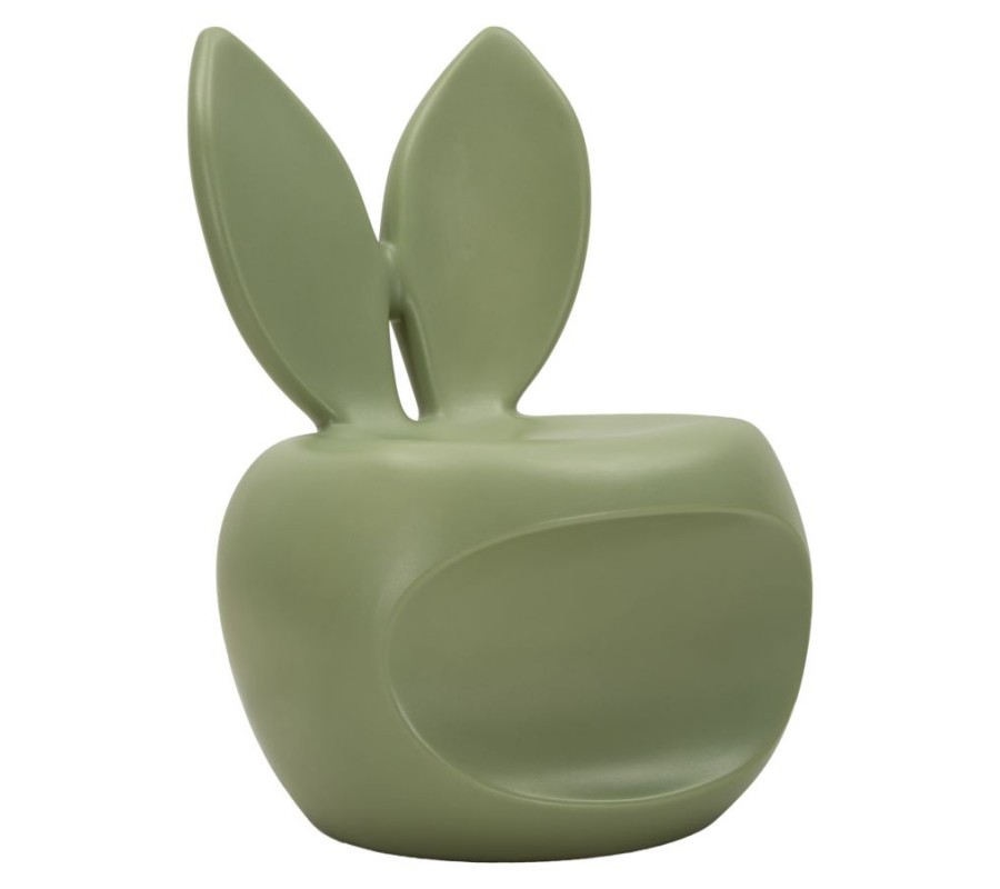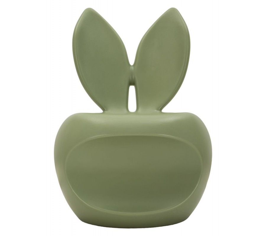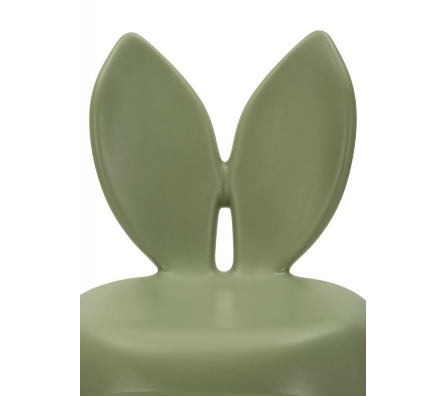 Designová kulatá taburetka Genny je originálním a hravým doplňkem interiéru, který zaujme na první pohled svým netradičním tvarem. Její kompaktní silueta s opěradlem v podobě zaječích uší působí moderně, vtipně a zároveň esteticky vyváženě. Jemná zelená barva a matný hladký povrch dodávají taburetce svěží, současný charakter a dělají z ní výrazný akcent v prostoru. Taburetka je vyrobena z pevného plastu.