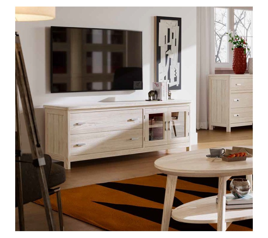 Luxusní masivní TV stolek z kolekce Cerdena zaujme svým nadčasovým designem, který vkusně propojuje moderní a rustikální prvky. Kromě prvotřídní kvality a příjemného vzhledu stolek nabízí také úložný prostor v podobě dvou šuplíků a skříňky se skelnými dvířky. Ekologická výroba z kvalitního masivního dřeva a ruční práce jsou zárukou kvality a také udržitelnosti. Dominantním designovým prvkem jsou kromě elegantních a čistých linií také zaoblené hrany zjemňující celkový vzhled. TV stolek lze stejně jako veškerý nábytek kolekce Cerdena barevně upravit na míru dle vzorníku dřeva. Doporučujeme jej umístit do minimalisticky laděných moderních obýváků v kombinaci s dalšími kousky z této luxusní kolekce.