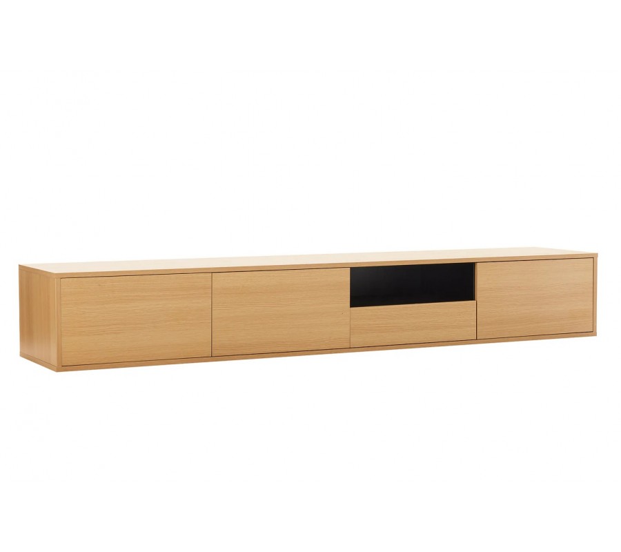 Moderní závěsný třídveřový obdélníkový TV stolek Attica v hnědé barvě s dubovým vzhledem 200 cm