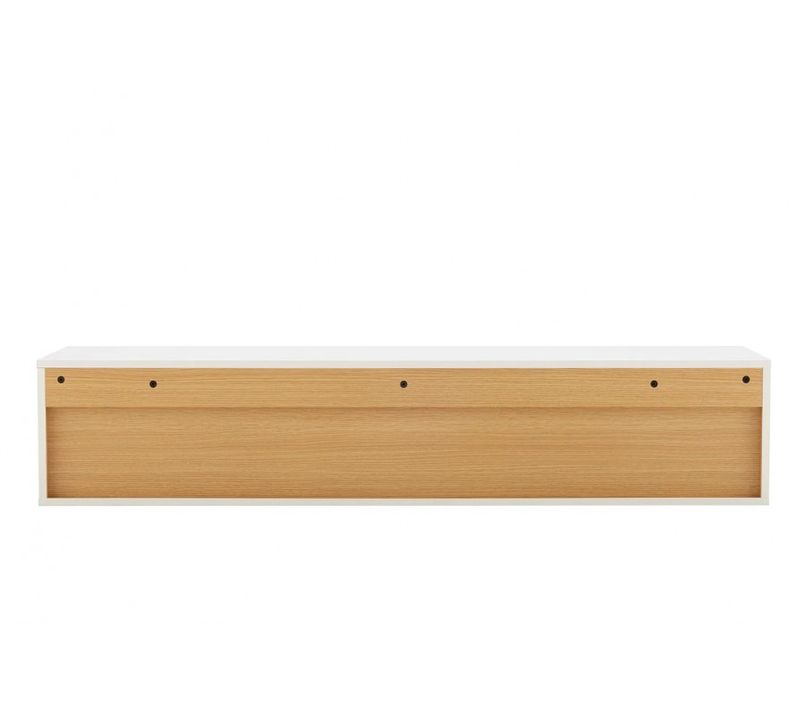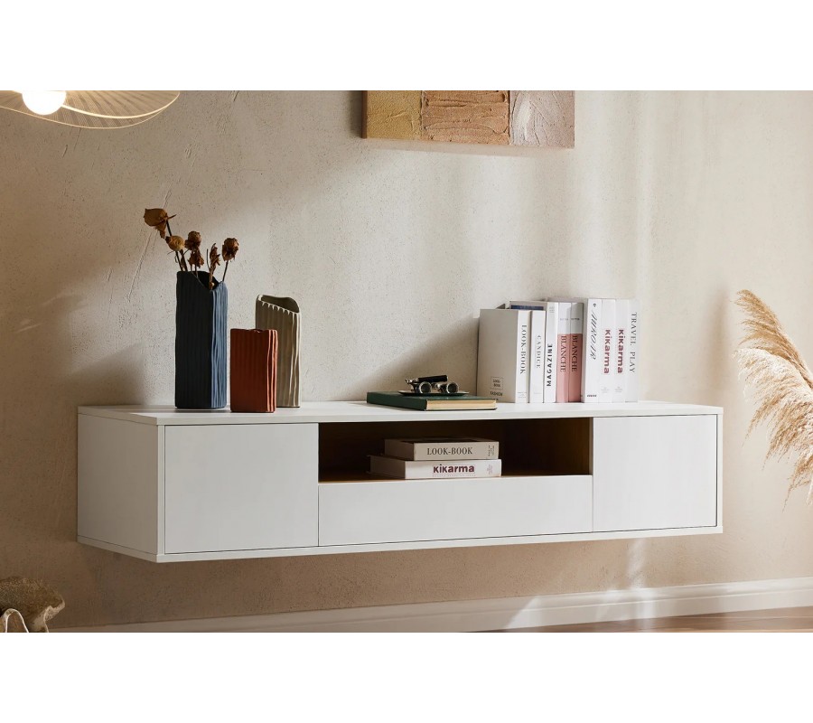 Moderní skandinávský závěsný TV stolek Attica působí čistě, nadčasově a velmi lehce, díky čemuž se stává elegantní součástí moderního interiéru. Závěsné provedení opticky odlehčuje prostor a nechává vyniknout stěnu i podlahu, což je ideální zejména do menších nebo vzdušných obývacích pokojů. Provedení v bílé barvě je doplněno o vnitřní plochy a polici v dubové dýze, která vytváří příjemný kontrast a zároveň zachovává teplý, přirozený charakter nábytku. Obdélníkový tvar podtrhuje čistý a minimalistický design typický pro skandinávský styl.