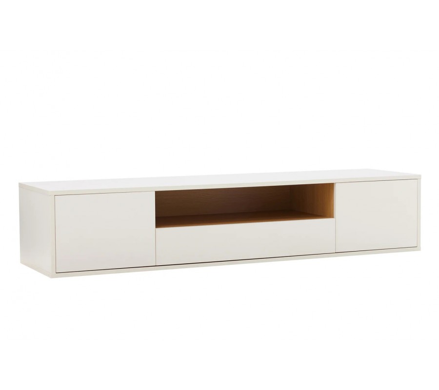Moderní skandinávský závěsný TV stolek Attica působí čistě, nadčasově a velmi snadno, díky čemuž se stává elegantní součástí moderního interiéru. Provedení v bílé barvě je doplněno o vnitřní plochy a polici s dubovým vzhledem, nábytku. Obdélníkový tvar a zavěšené provedení opticky odlehčují prostor a nechávají vyniknout stěnu i podlahu, což je ideální zejména do menších nebo vzdušných obývacích pokojů.