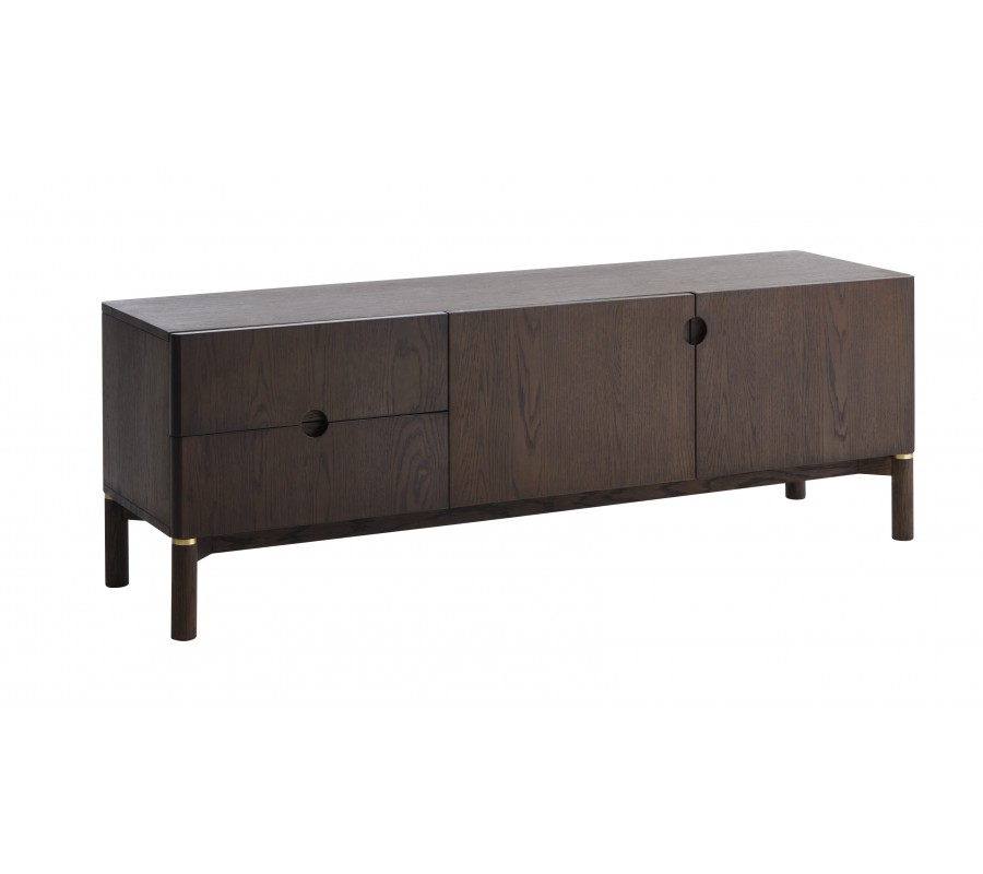 Art deco dvoudveřový obdélníkový hnědý TV stolek Linia se dvěma šuplíky s válcovými nožičkami 160 cm