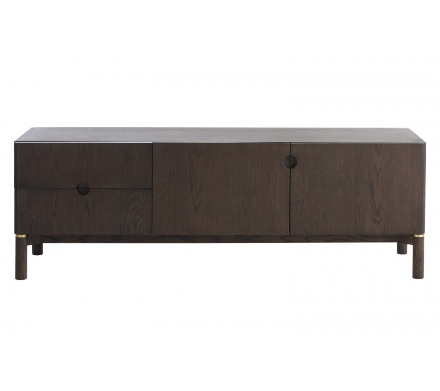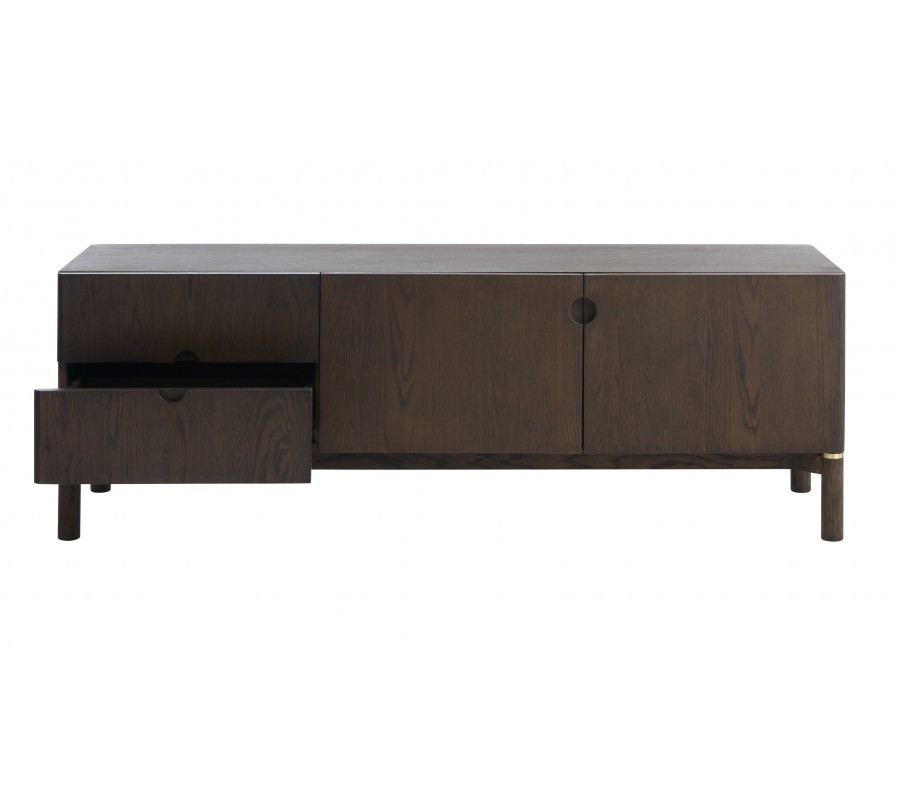 Art deco dvoudveřový obdélníkový hnědý TV stolek Linia se dvěma šuplíky s válcovými nožičkami 160 cm