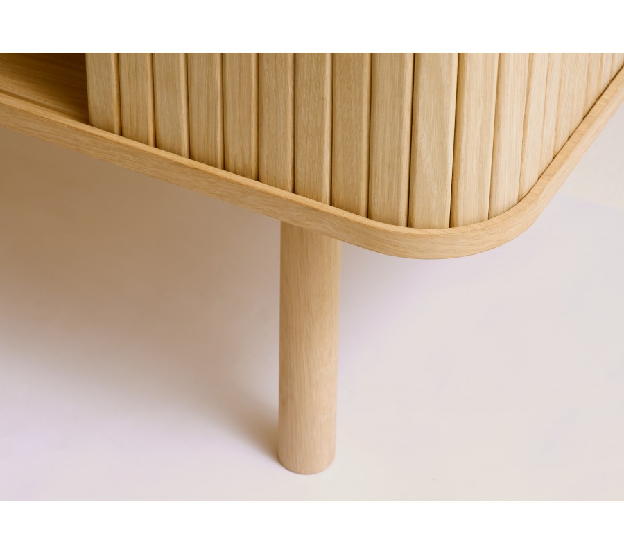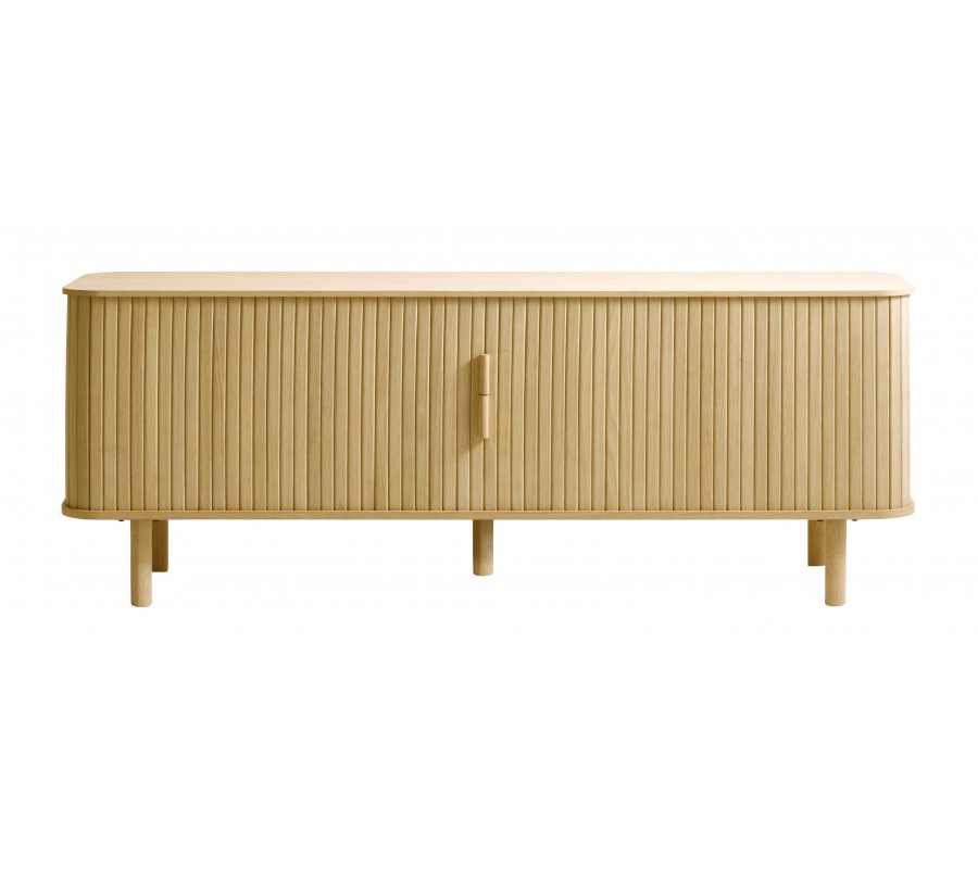 Luxusní skandinávský dubový TV stolek Elbe ve světle hnědé barvě s posuvnými drážkovanými dvířky 160 cm