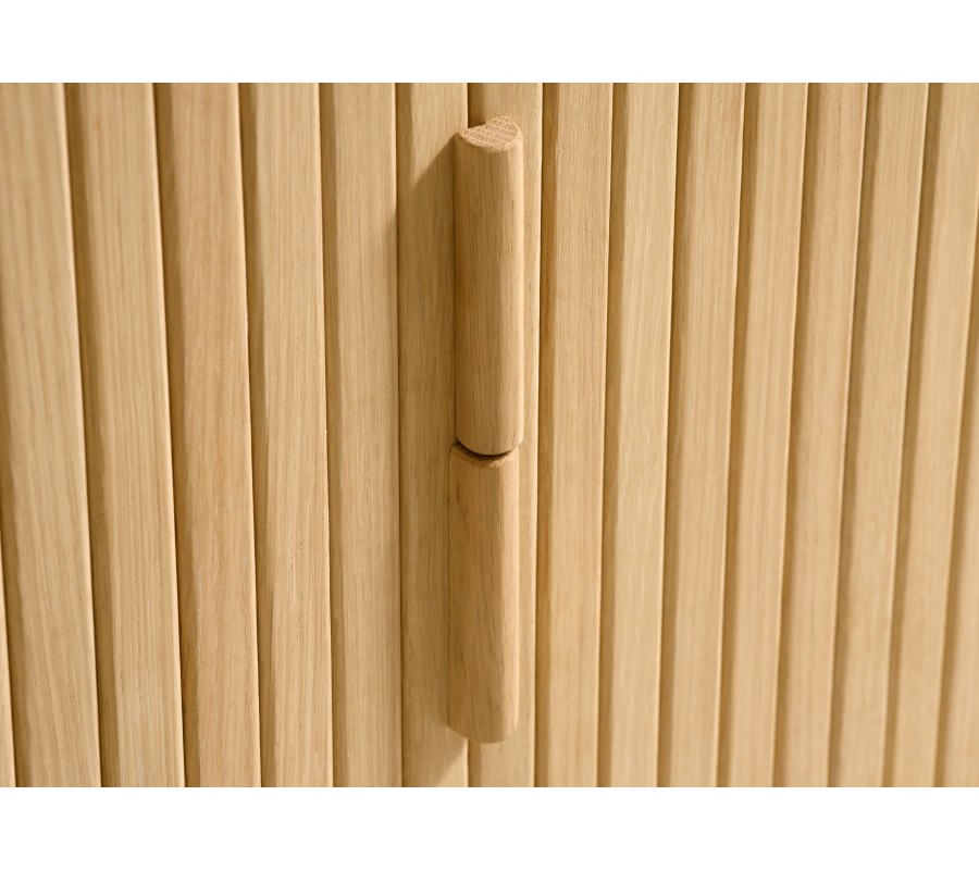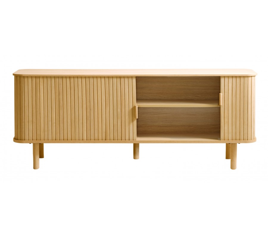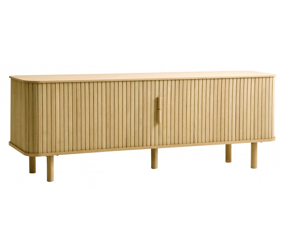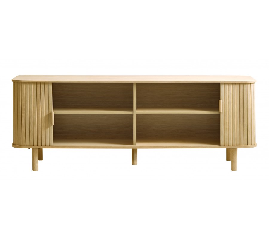 Luxusní skandinávský dubový TV stolek Roskilde ve světle hnědé barvě s posuvnými drážkovanými dvířky 160 cm