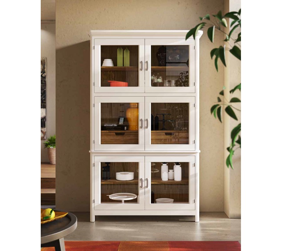 Luxusní masivní vitrína Cerdena s poličkami se skleněnými dvířky 203cm
