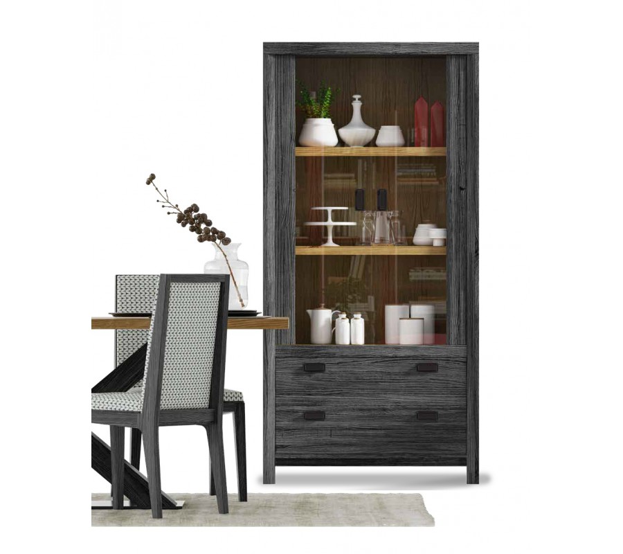 Luxusní moderní prosklená vitrína Lyon z masivního dřeva se dvěma šuplíky dvoudveřová 98cm