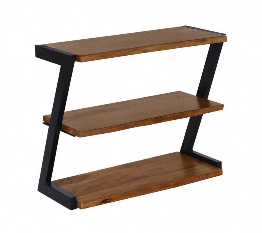 Tvoří jej stabilní kovová konstrukce v matné černé barvě, která rámuje tři prostorné police z masivního akáciového dřeva. Dřevo má teplý přirozený odstín se zvýrazněnou kresbou, díky čemuž působí útulně a příjemně doplňuje robustní vzhled kovu.