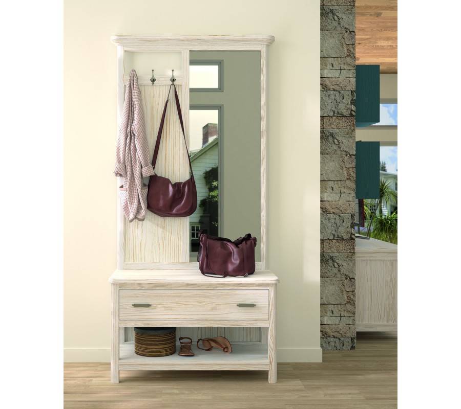 Luxusní venkovská masivní chodbová sestava Cerdena s lavicí se zásuvkou a poličkou a zrcadlem s věšáky 197 cm