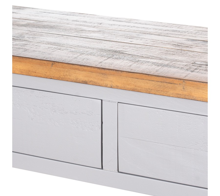 Designová konzola Byland se zásuvkami v světle šedé barvě s dřevěnými detaily 131cm