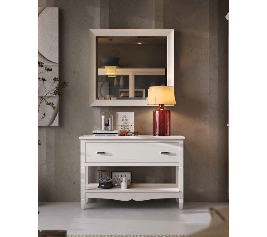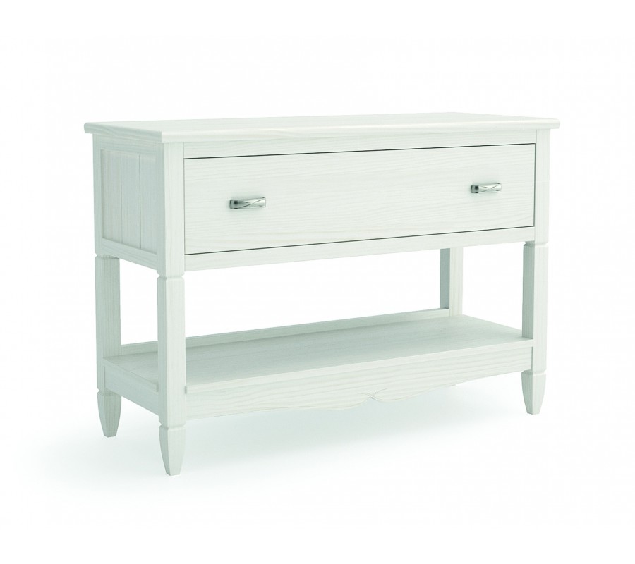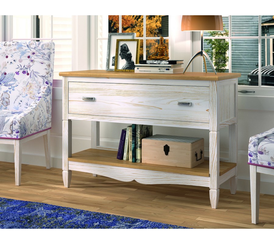 Luxusní venkovský konzolový stolek Amberes z masivního dřeva s policí a šuplíkem s vyřezávaným zdobením 108 cm