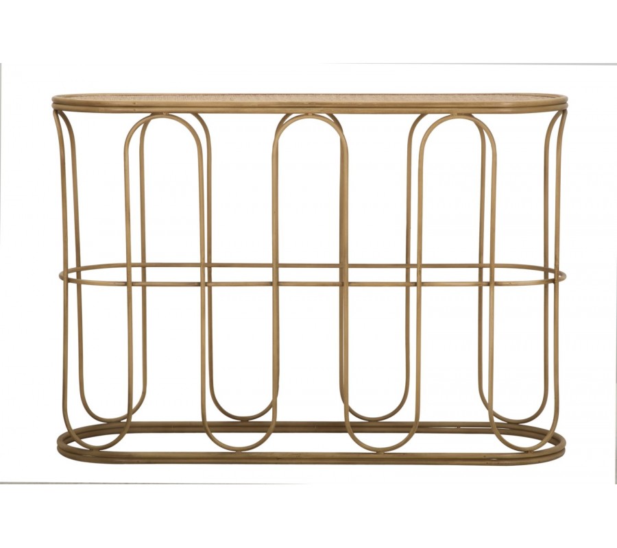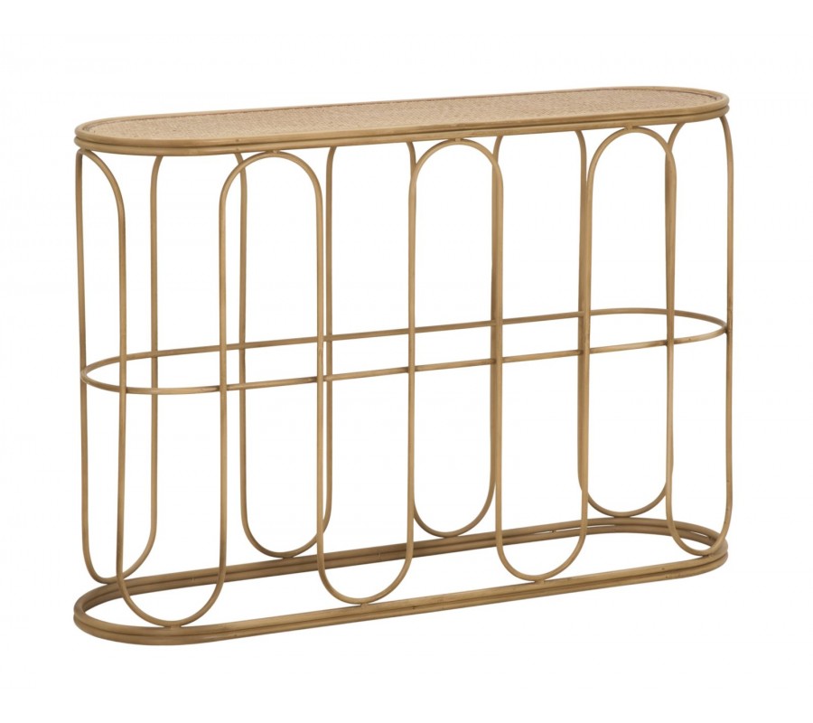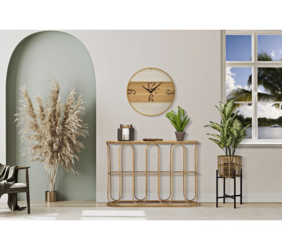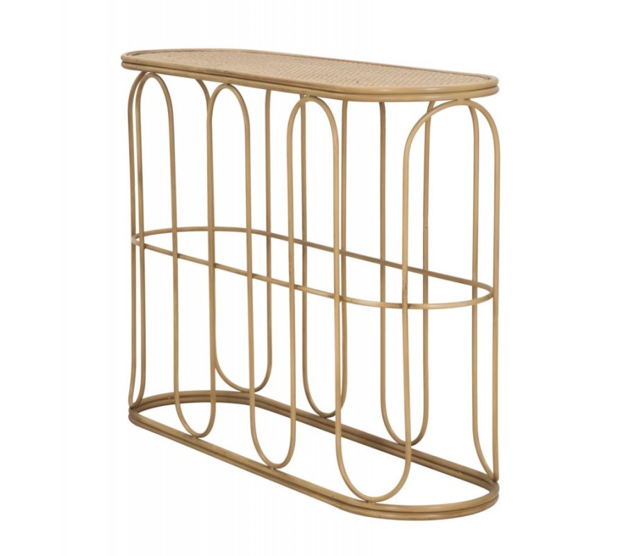 Konzolový stolek Ponio v sobě spojuje řemeslnou preciznost s moderním designem. Jeho konstrukce je vyrobena z přírodního ratanu v jemném hnědém odstínu, přičemž tenké, elegantně ohýbané ratanové pruty vytvářejí symetrický vzor propojených oblouků. Tato vzdušná struktura působí snadno, ale zároveň zajišťuje maximální stabilitu.