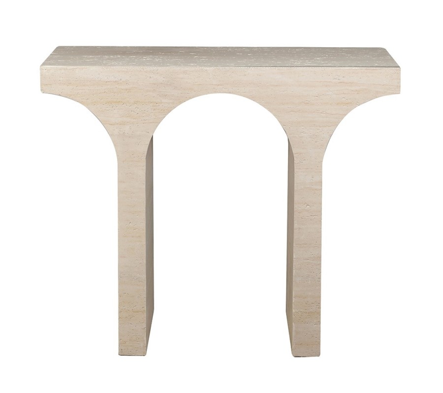 Moderní mramorový konzolový stolek Cube Travertino s oblouky v béžové barvě v obdélníkovém tvaru 96 cm