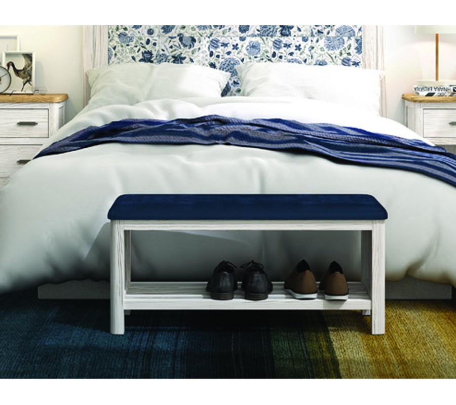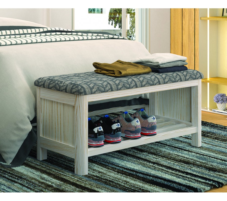 Luxusní moderní masivní lavice Cerdena s otevřenou policí na boty a čalouněným sedadlem 90 cm