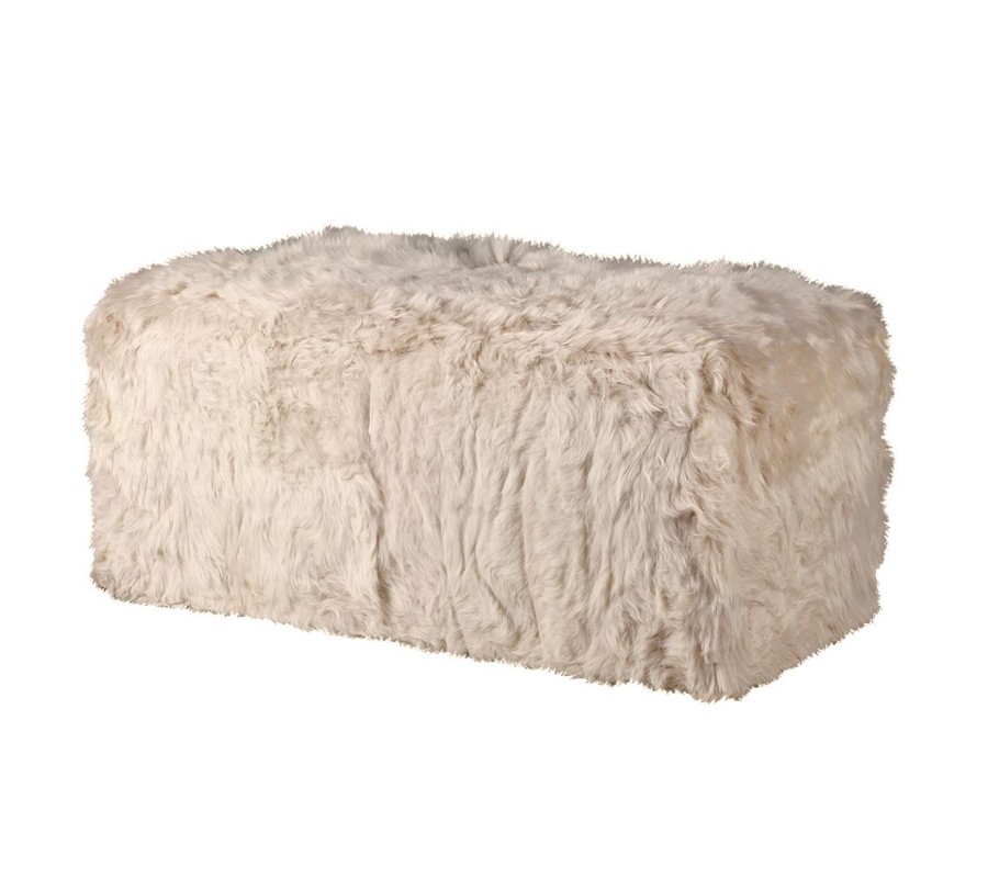 Luxusní dvoumístná kožešinová lavice Louna z jehněčí vlny v krémové barvě s dlouhým vlasem v obdélníkovém tvaru 110 cm