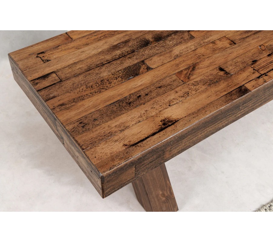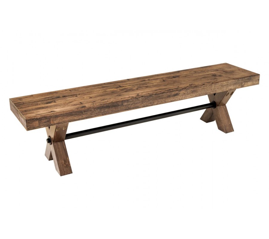 Venkovská masivní lavice Sawyer v hnědé barvě s tmavým patinovaným efektem a zkříženýma nohama 180 cm