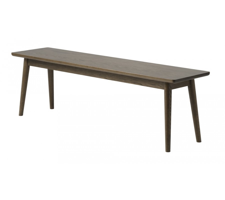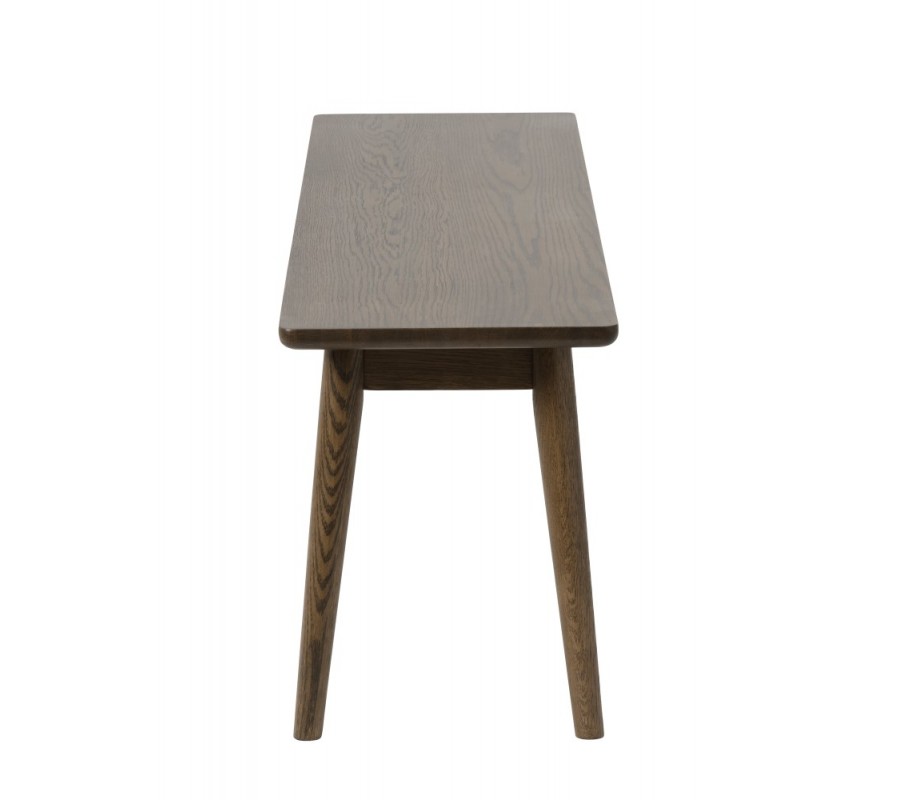 Designová retro lavice Aarhus v tmavě hnědé barvě s dubovým dekorem a šikmýma nohama 150 cm