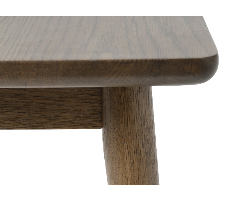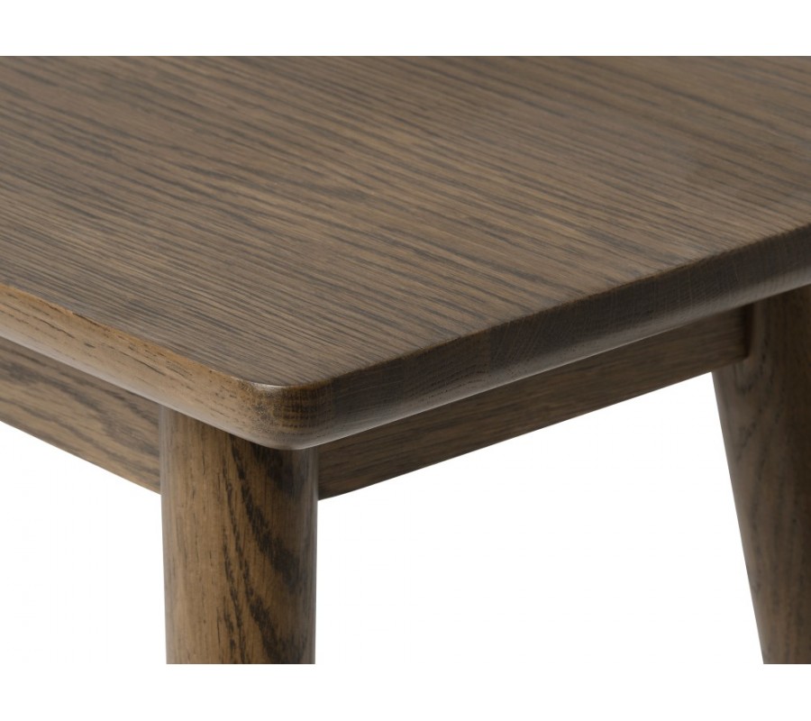 Lavice je vyrobena z dýhovaného dřeva s dubovým dekorem v tmavě hnědé barvě, která působí elegantně a sofistikovaně. Přirozenou estetiku materiálu zvýrazňuje pravidelná kresba letokruhů, díky čemuž si nábytek zachovává teplý přírodní charakter.