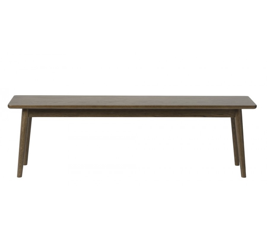 Designová retro lavice Aarhus v tmavě hnědé barvě s dubovým dekorem a šikmýma nohama 150 cm